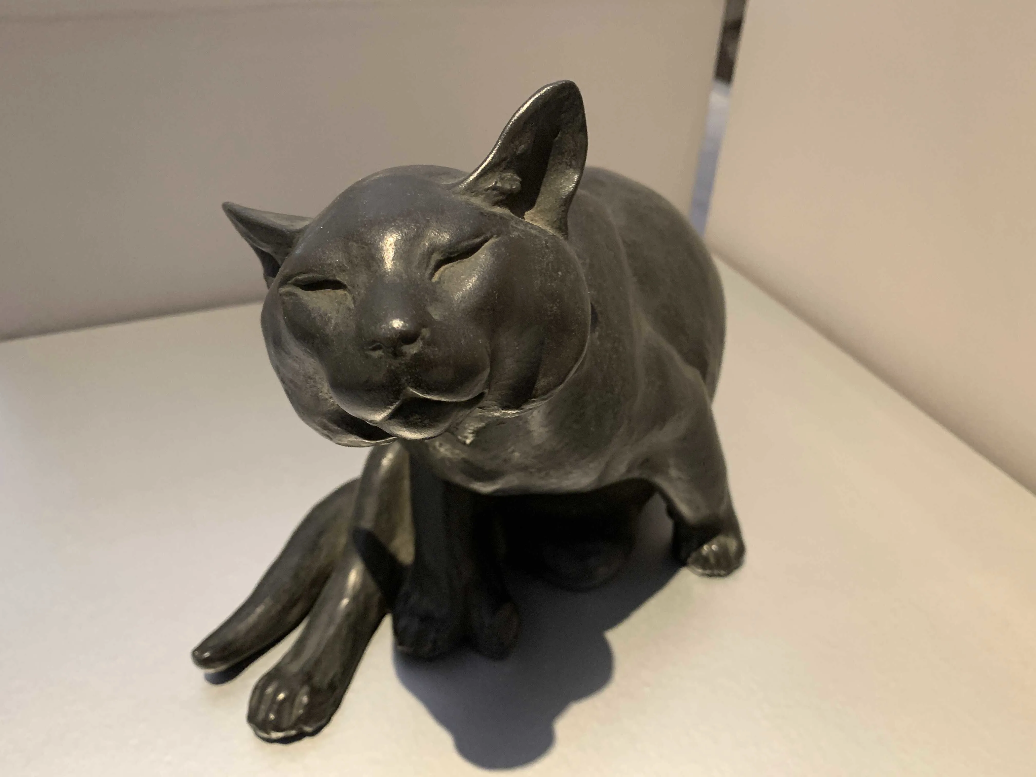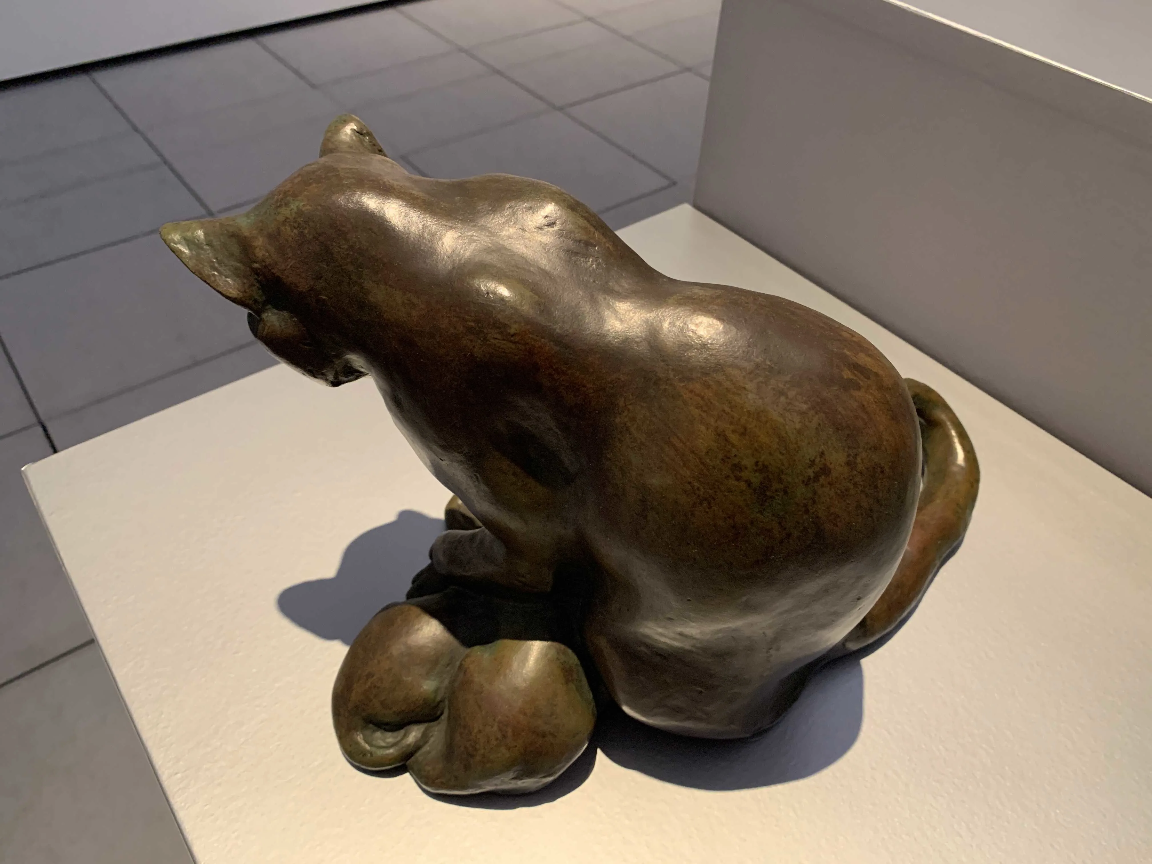 朝倉の猫好きは有名だ。多いときには19匹もの猫を自邸で飼っていた彼は、その生涯で58点もの猫の作品を残している(わずかだが犬の彫刻も作った)。81歳で亡くなった1964年も、自身の彫刻家生活60周年と東京オリンピックに合わせて100体の猫が勢揃いする「猫百態」展の開催に熱心だったというのだからすごい。「猫はだいたいわかるが人体はまだわからないところがあるんだ。」という本人のコメントも、猫を知りすぎている感じがしてすごい。