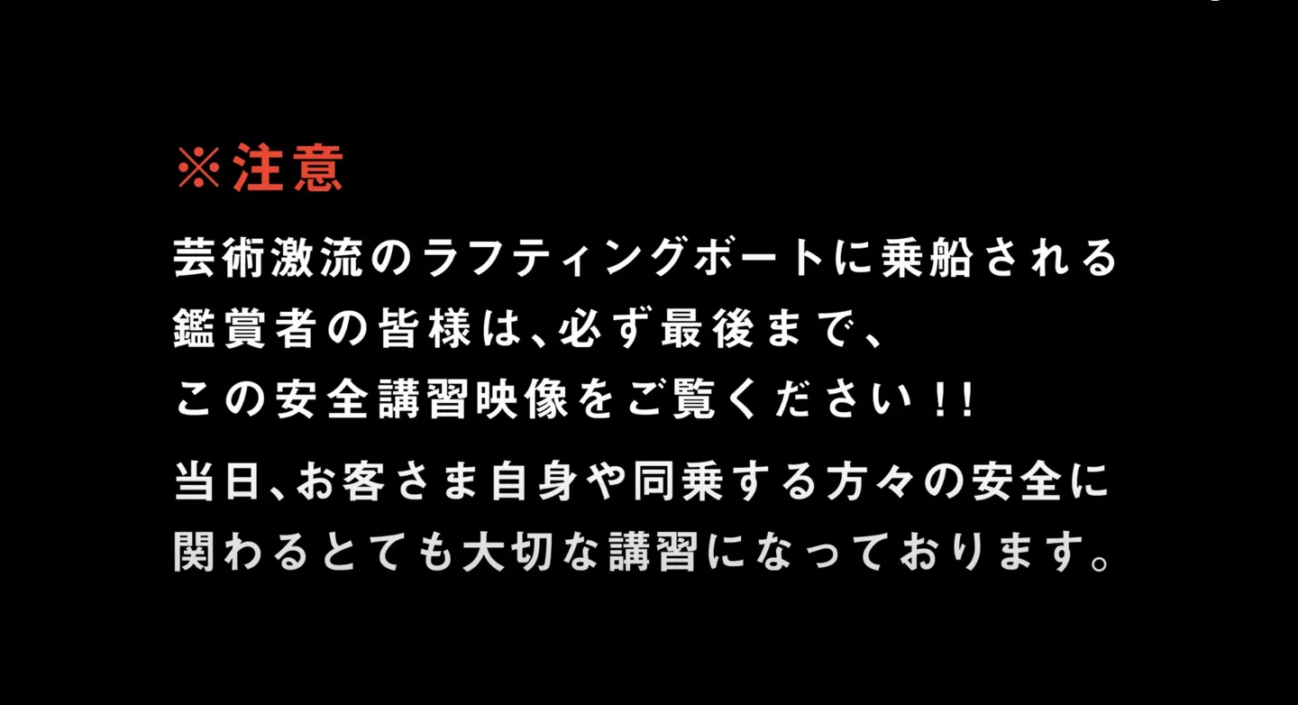 「激流」を下りながら「芸術」に触れるという、いかにも破天荒なプロジェクトが芸術激流だが、コースの前半から後半へと移り変わっていく緩急の巧みさや、作品と自然の関わり方の妙味など、アーティストが主体になっているからこそ実現できる完成度の高さ、繊細さに満ちた体験であった。