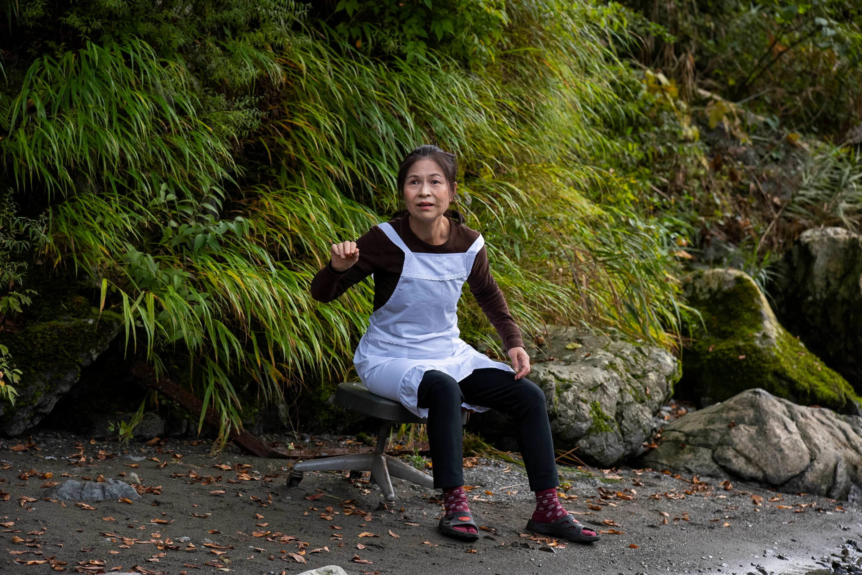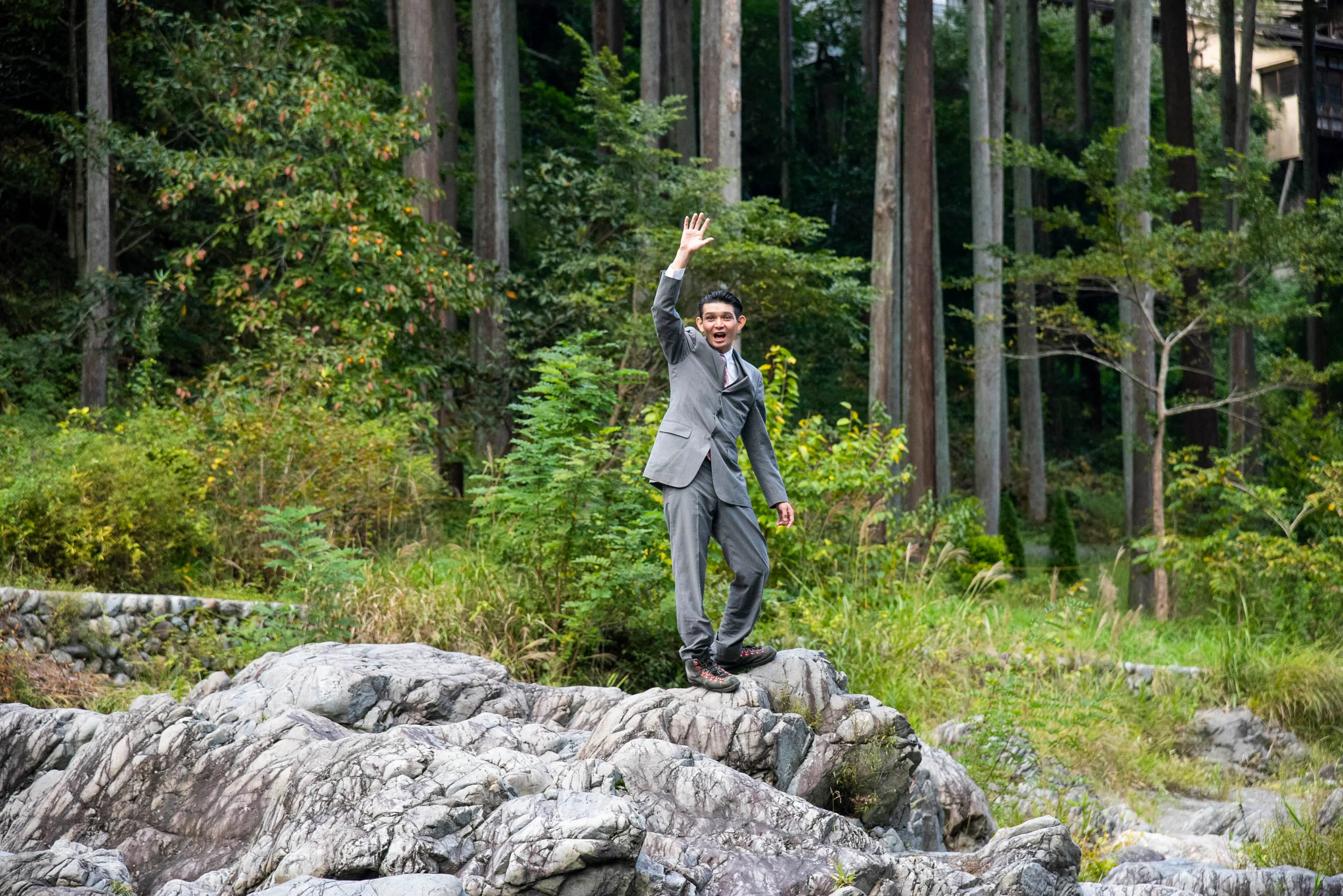 永畑智大、酒井貴史、有賀慎吾が結成した「黄金世代」のパフォーマンスも気になるが、休日を楽しむためにやってきたであろう背後の一般人も気になる。アーティストの悪ふざけに困惑しつつも、けっして怒っているようには見えない(たぶん)おおらかな雰囲気は、奥多摩の自然の豊かさによるものかもしれない。自然との関わりは、すべての人を開放的で寛容な気持ちにさせてくれる。