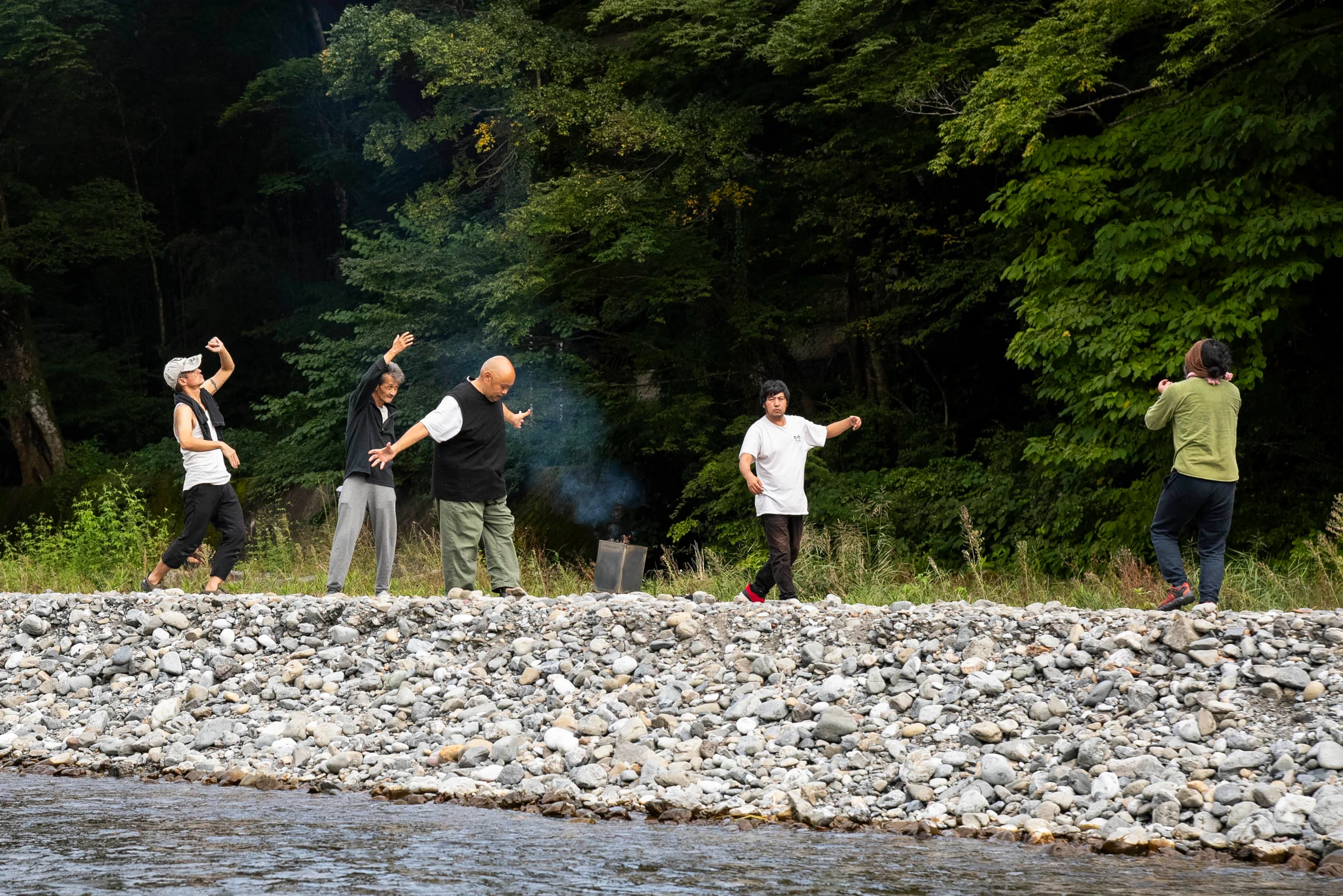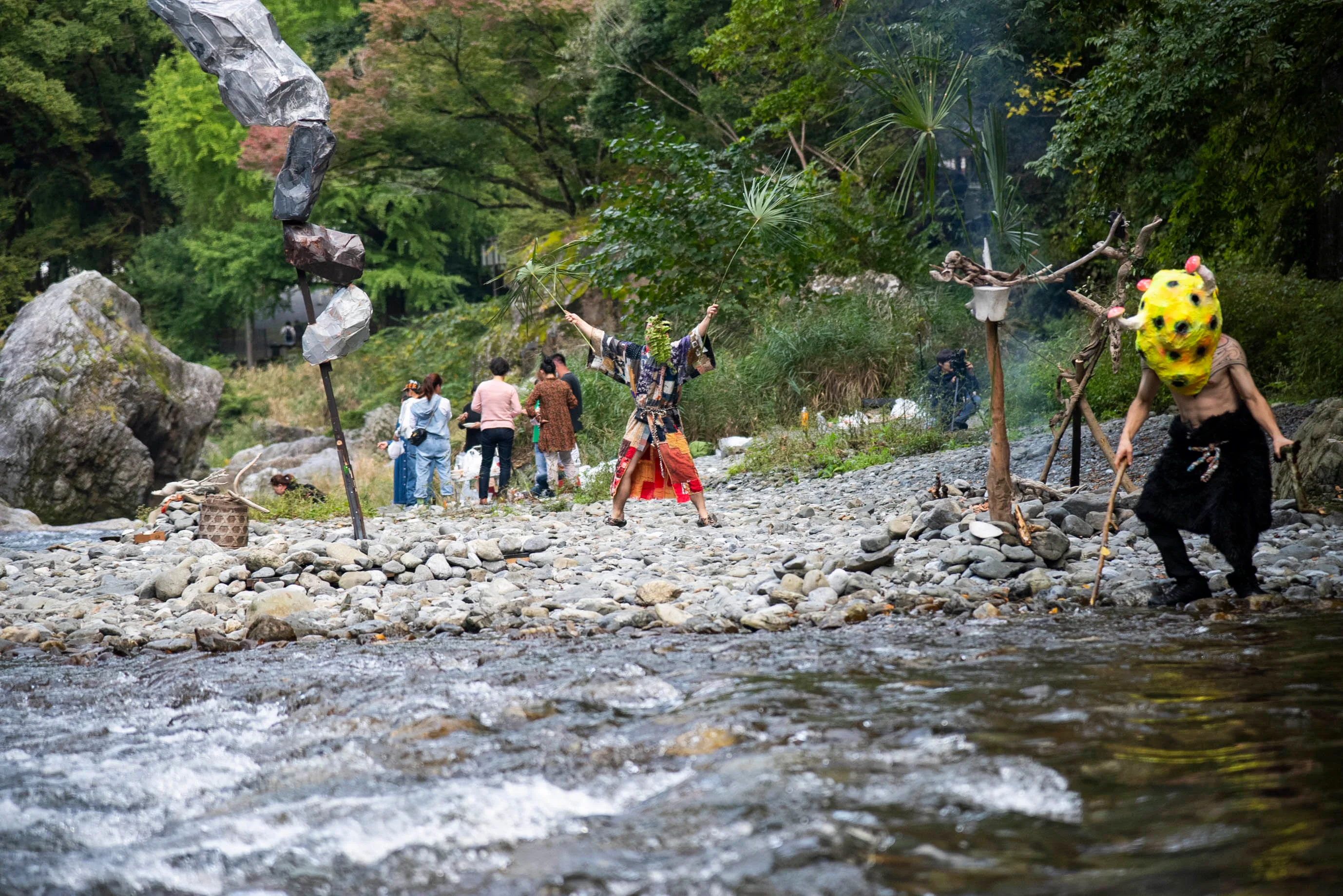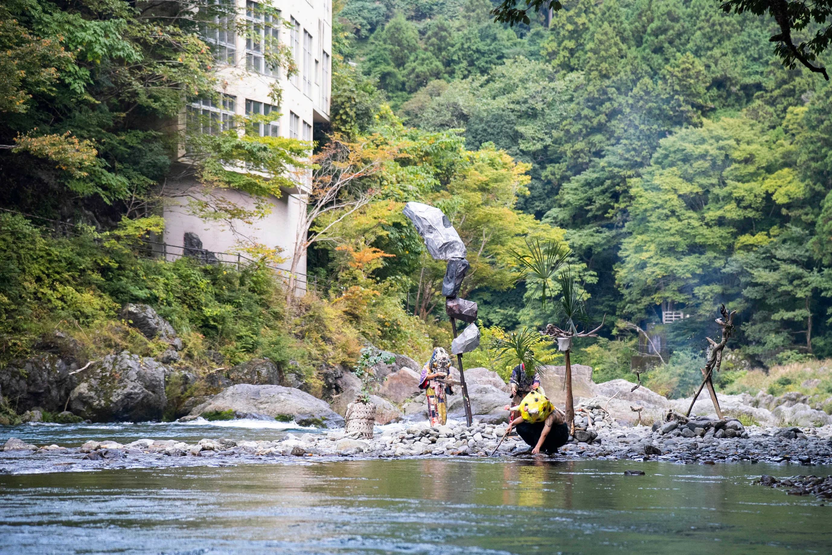 コースの前半には多数の作品を配置し、川の流れが緩やかになる後半は奥多摩の自然が主役となるような構成が心地よい。そして実質的な最後の作品として登場するのが、新人Hソケリッサ!のダンスだ。