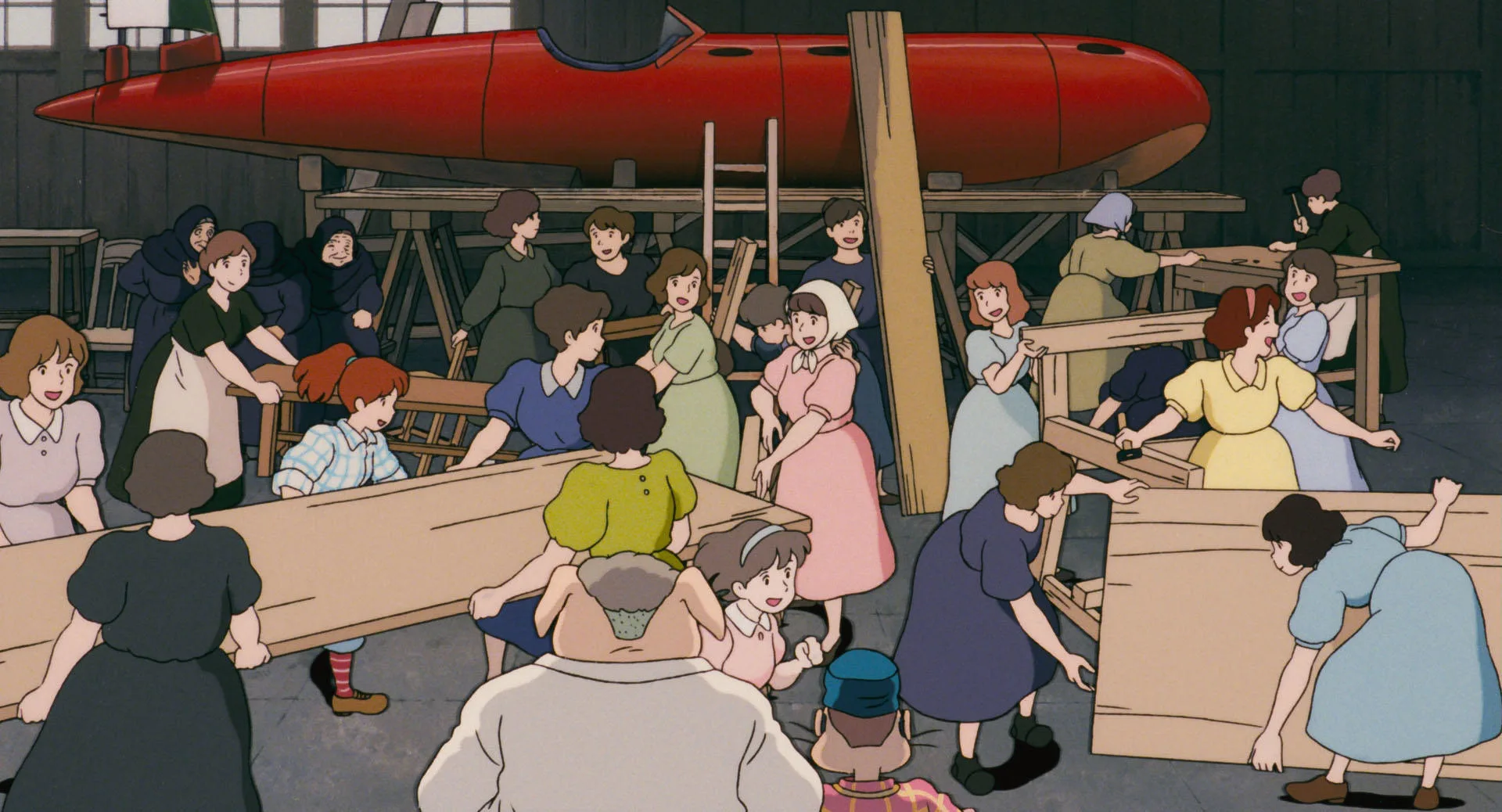 『紅の豚』の制作時に自ら設計したスタジオジブリの現在の東小金井のスタジオでは、女子トイレを男子トイレの2倍の広さにするなど、「女性が働きやすい環境づくり」を理想としていた有名なエピソードもあります。『紅の豚』の劇中に登場するピッコロ社や『もののけ姫』のタタラ場なども、女性たちが活躍する集団として描かれていますし、その原点には、東映動画時代に見た「女性が生き生きと働く姿」があるのかもしれません。