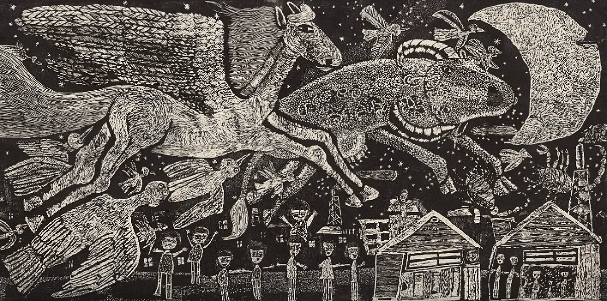 ──版画教育運動については、「彫刻刀が刻む戦後日本―2つの民衆版画運動」(町田市立国際版画美術館、2022年)という展覧会が開催されるなど、美術の世界でも近年注目が高まっています。『魔女の宅急便』でウルスラが描いた絵のモデルが、版画教育運動の動きのなかで、八戸市立湊中学校の養護学級の生徒たちが制作した版画作品であることはよく知られていますが、ご著書ではそうした直接的で単純なつながりにとどまらない、より本質的な触覚性と想像力のはなしが展開されていて、面白かったです。