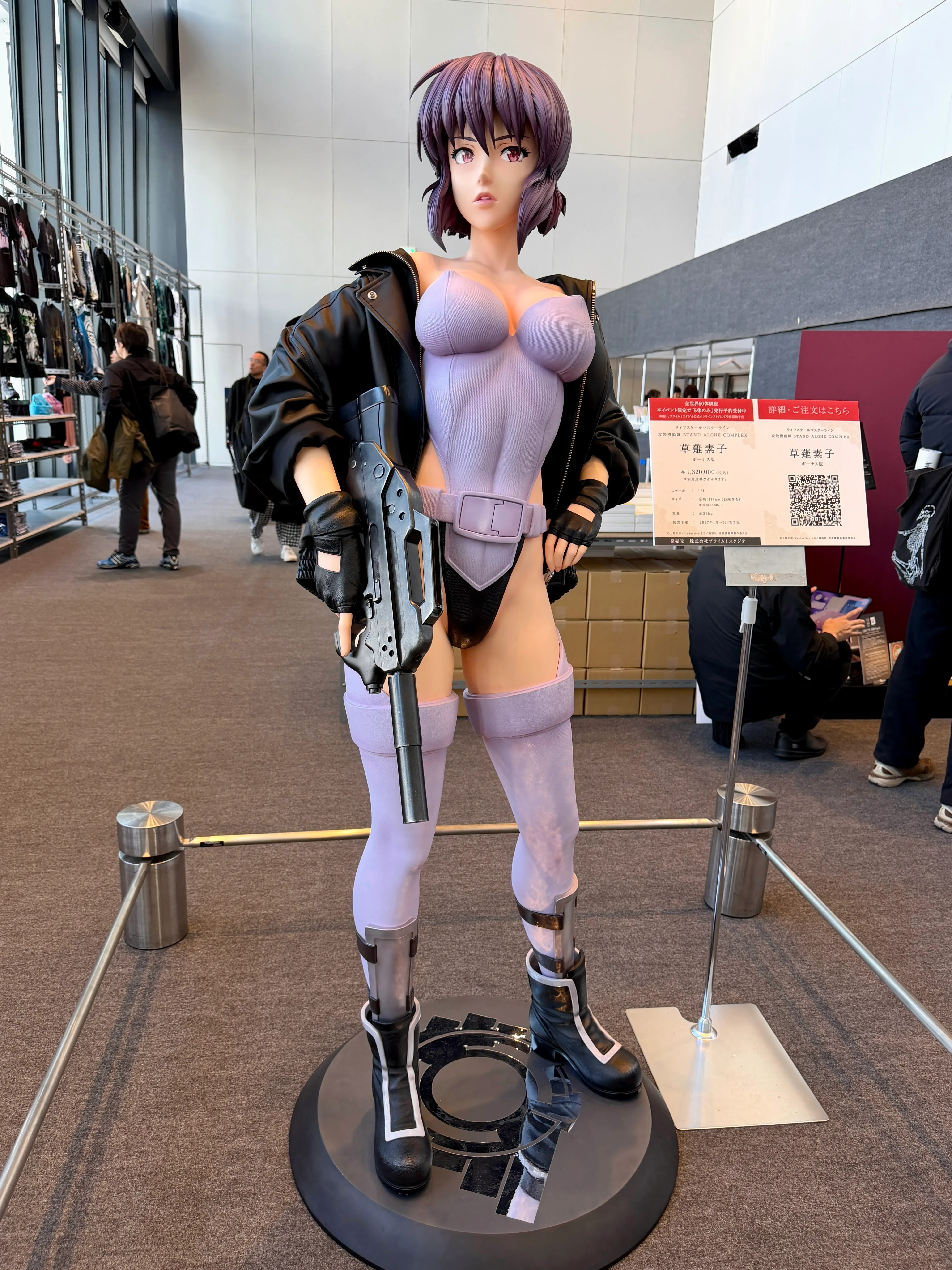 会場風景より、原画と空山による草薙素子をモデルにした新作彫像 © 2026 Shirow Masamune/KODANSHA/THE GHOST IN THE SHELL COMMITTEE