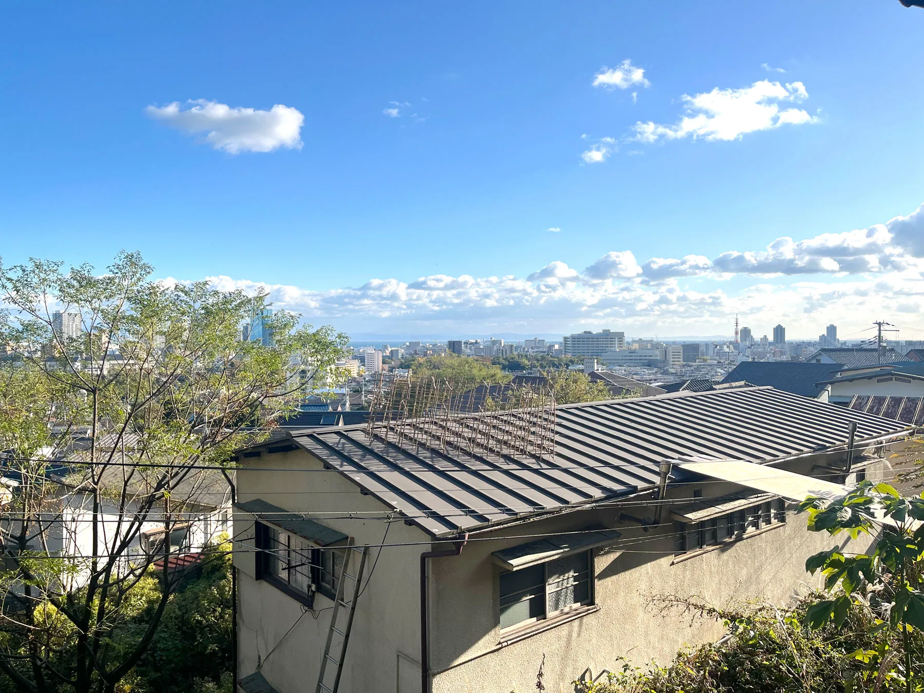茶室におもむろに刺された竹も、竹林をイメージさせる。隣の屋根の上には竹で組まれた造形物が置かれている。目下に広がる神戸市内の都市風景と合わせみると、その風景のギャップに驚かされるだろう。