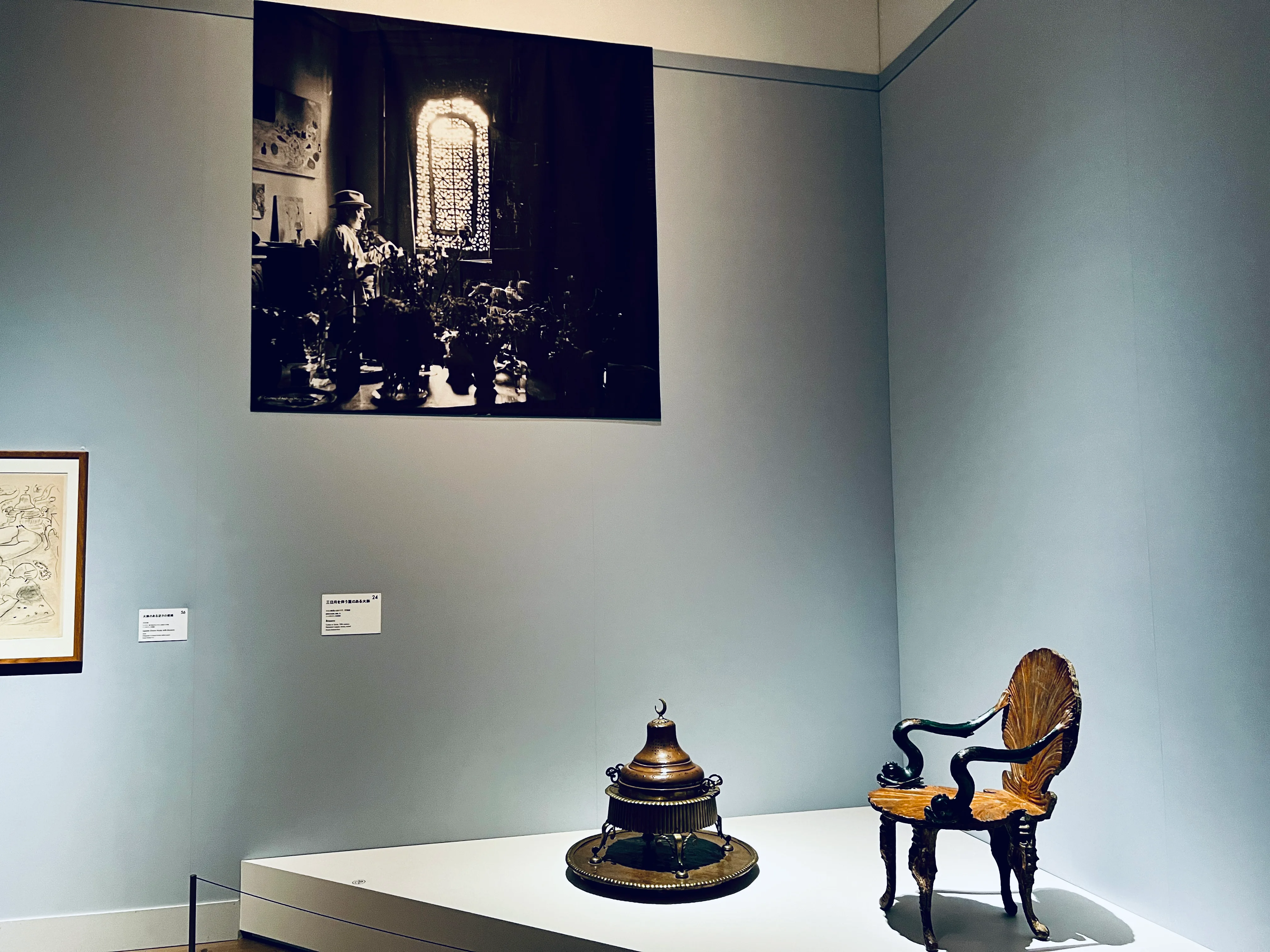 ニースに到着してからのアトリエの様子を伝える展示も興味深い。マティスは様々なオブジェを収集し、ニースに構えたアトリエ兼アパルトマンに劇場ふうに配置した。本展では肘掛け椅子などのオブジェや、それらのオブジェが描かれた絵画作品が展示されている。
