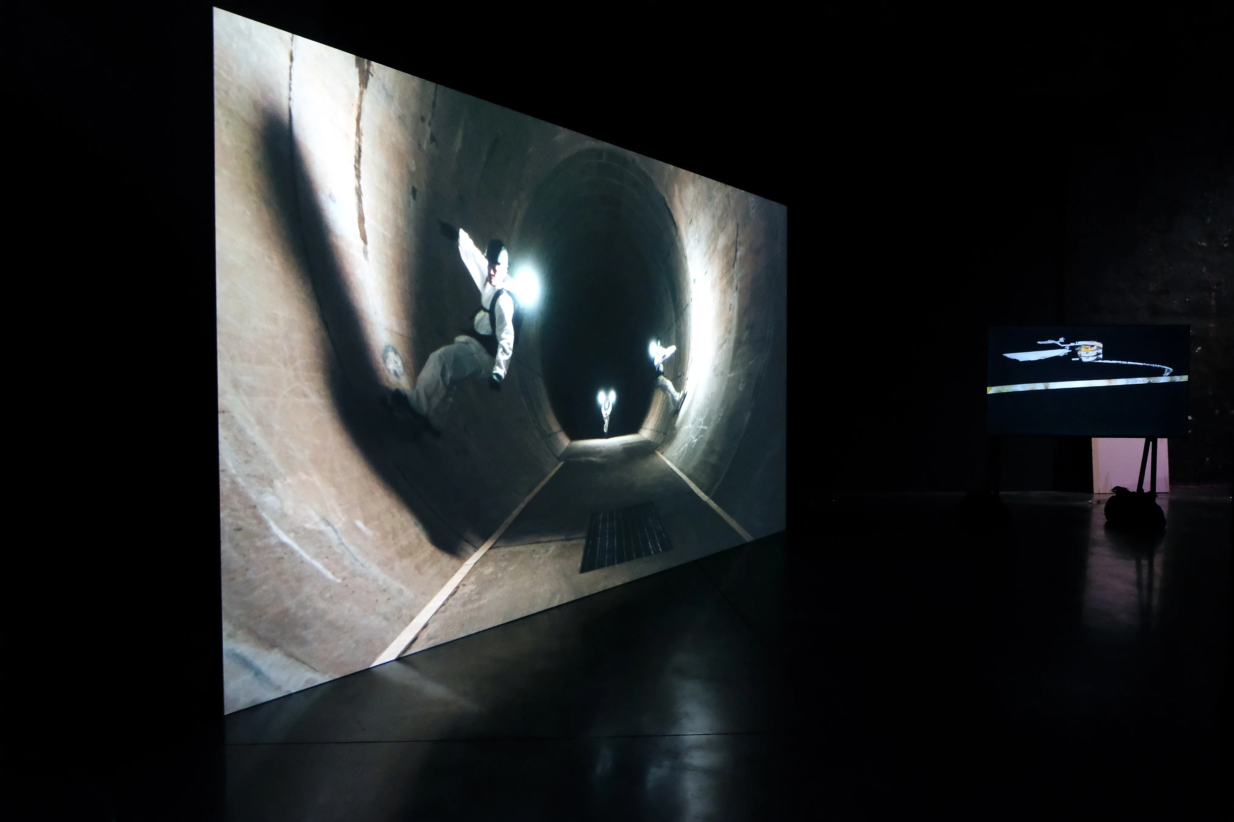 都市や公共空間などに着目するアーティストユニットSIDE COREは、東京の地下空間をスケートボードで駆け巡る《under city(地下都市)》と、青函トンネルと周辺の竜飛崎を舞台にし《looking for flying dragon(竜飛を探して)》のふたつの映像作品を発表。近くにいるのに誰も見たことがない場所、かつてあったけれど失われてしまった場所を映像の世界に落とし込んでいる。