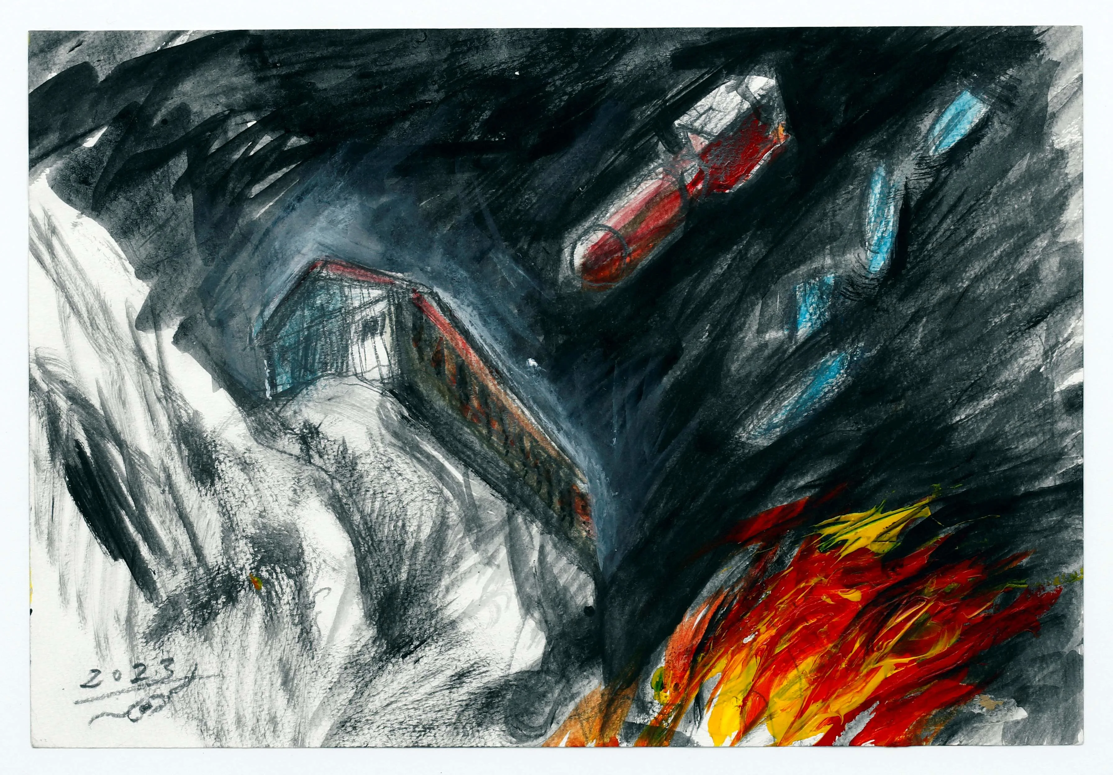 そう語る中村が、体験に基づく戦争画の制作を始めたのは90歳を迎えた2022年頃。「参加した催しで太平洋戦争の写真を見て突然、描こうと思い立った。少年時代に辛い思いをした、あの戦争とはなんだったのかを見つめ直したくなった。年齢を考えると、描くこと自体これが最後になるかもしれない。画業の集大成として、自分の戦争の記憶を描き残そうと考えた」