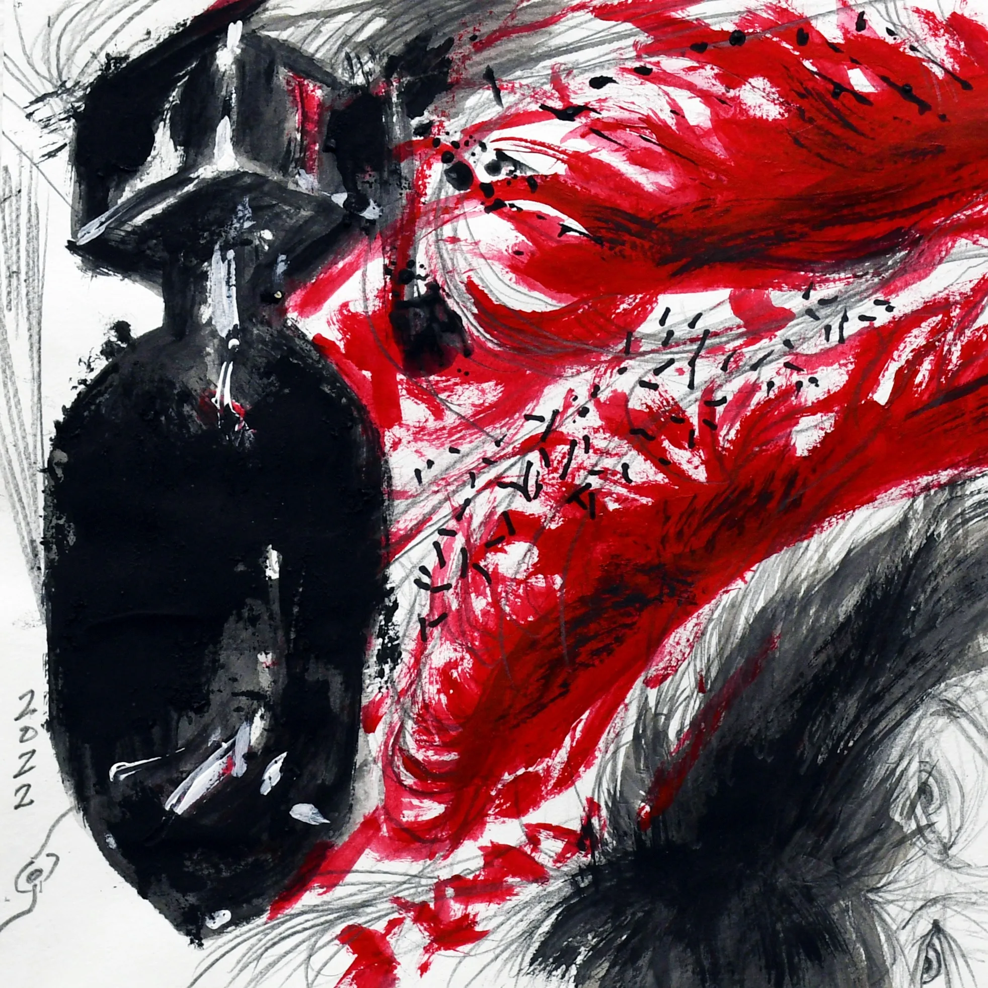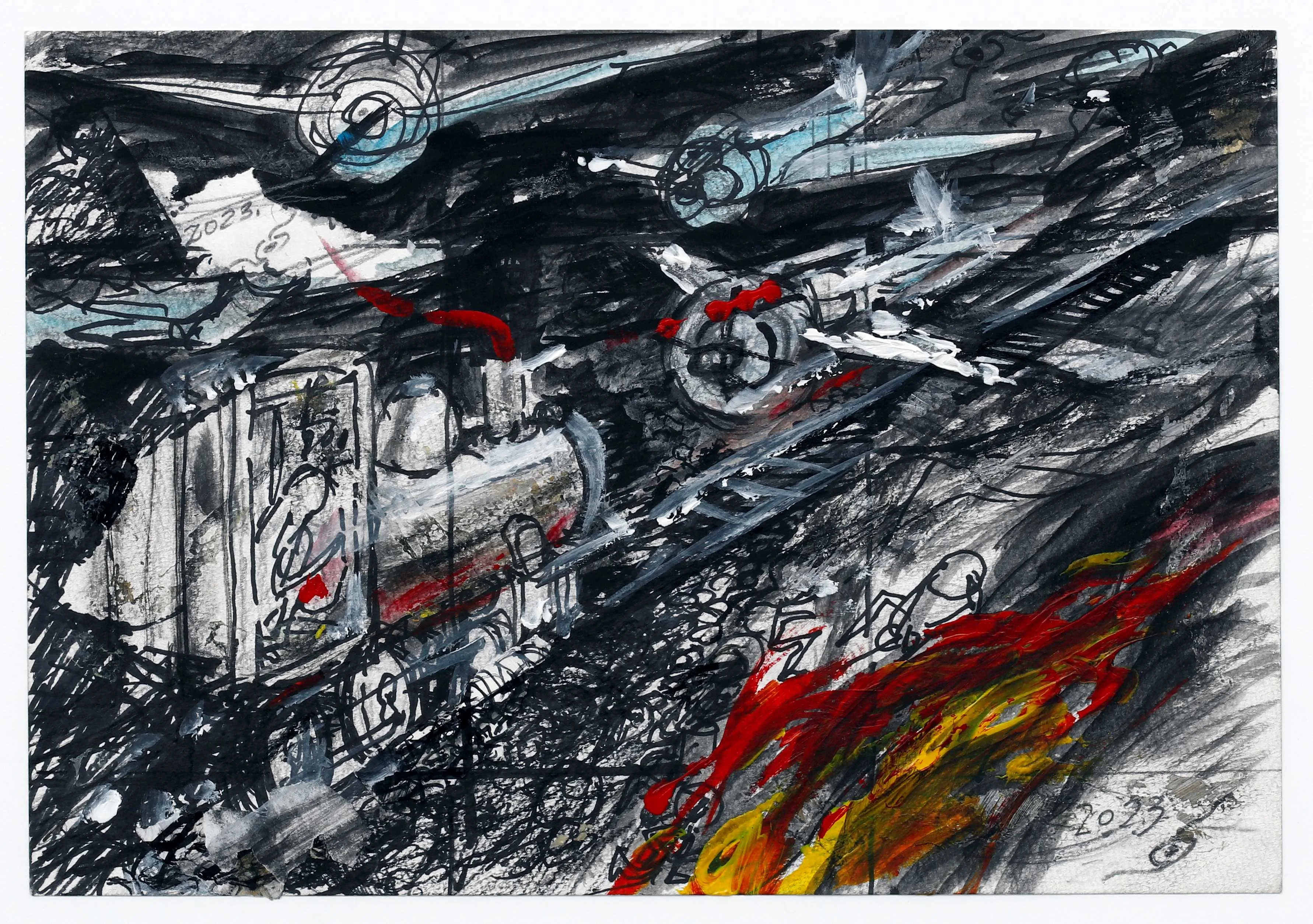 中村は記憶をたどり、ときに思い出を絞り出すように戦争画の制作を進め、2023年に銀座のギャラリー58で開催した個展「中村宏 戦争記憶絵図」で4点のキャンバス作品やドローイングを発表。翌年に東京都美術館でのグループ展「齣展」に《防空壕 1945》を出品し、今夏にギャラリー58で開催された石内都や篠原有司男らとのグループ展「戦後80年 1945年の記憶」はドローイング5点を展示した。これまで描いた計5点のキャンバス作品のうち、《空襲 1945》は東京国立近代美術館に、他4点は東京都現代美術館に収蔵された。