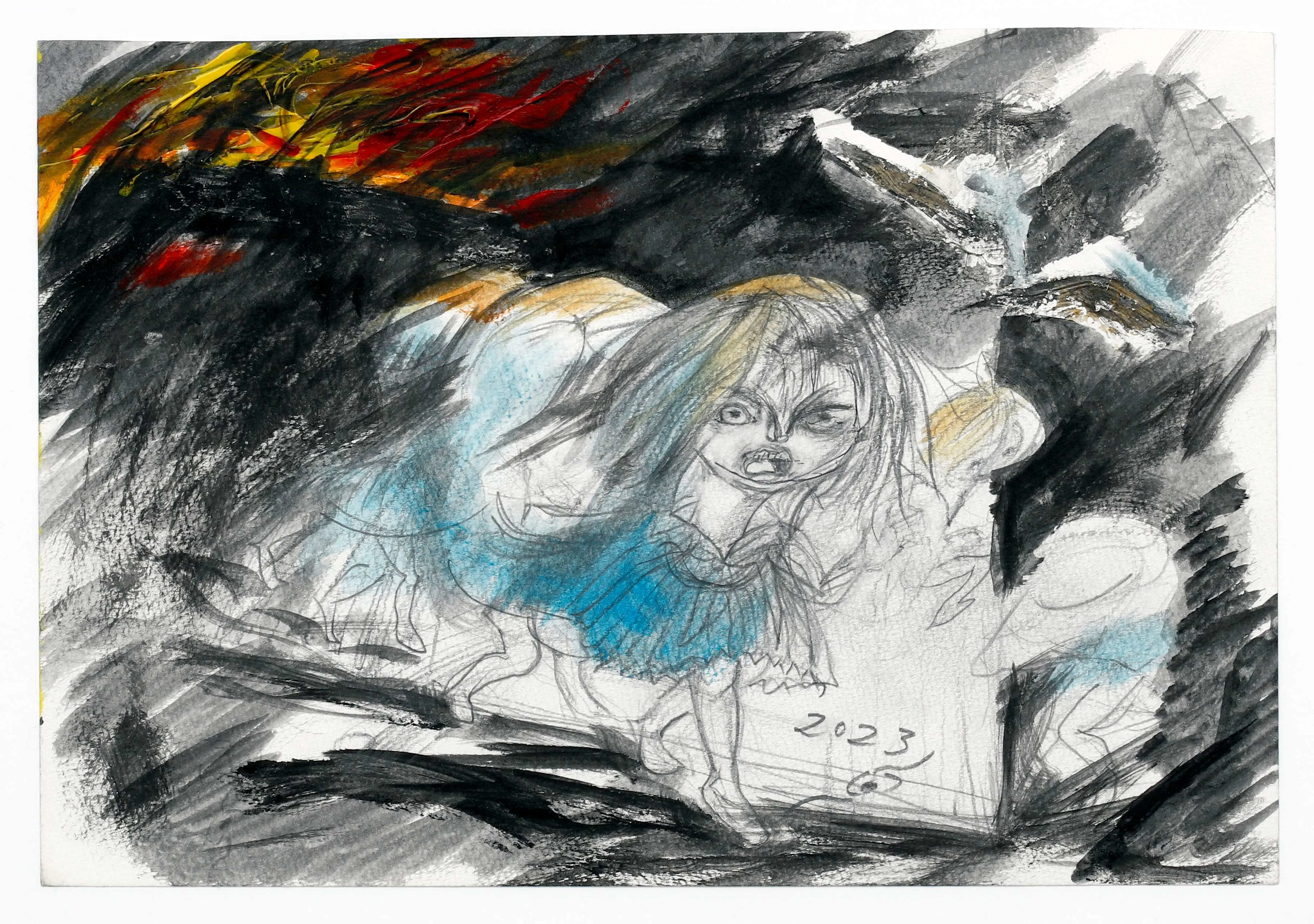 描き進めるうち、自作について発見もあった。「僕は可愛らしい子供の顔が描けない。恐怖や恨み、怒りが混ざった表情になる。そうした子供の顔を実際に見たのかは定かではないが、戦時中の記憶を探るうちに空襲に遭ったときの自分や女学生たちの表情に思い当たる節があった。自分の原体験が作品に現れるのだと思う」と中村は説明する。