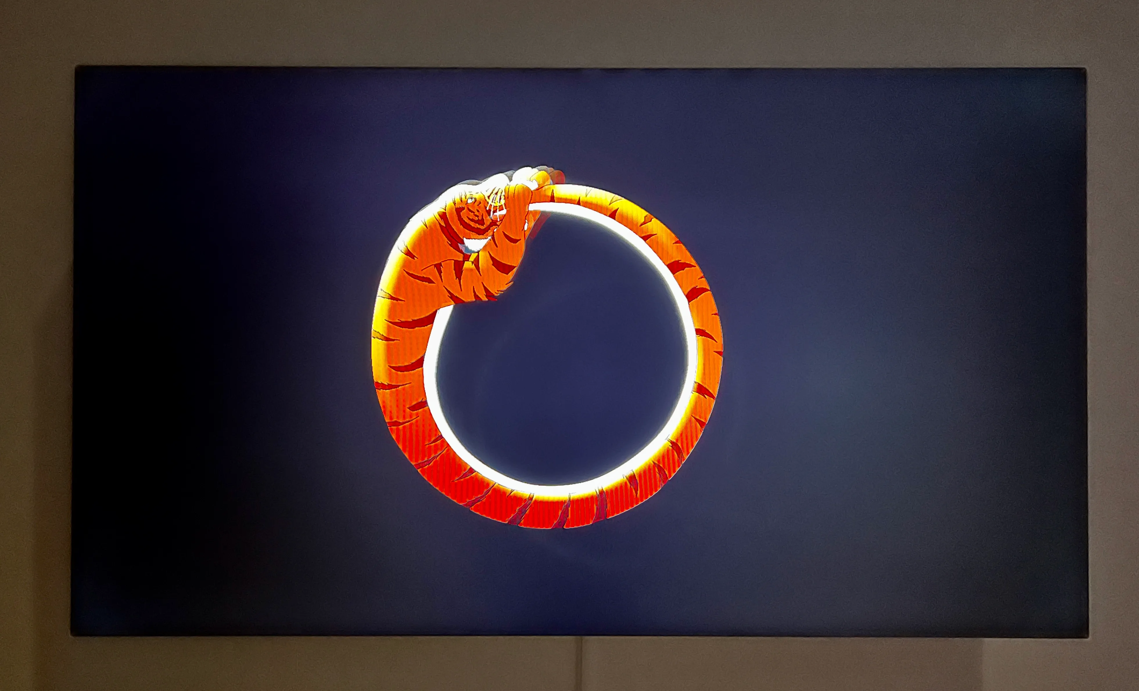 近年ホーは、時間というものへの関心を高め、作品制作を行っている。この新たな展開が結実した新作《時間(タイム)のT》(2023)は、2面のスクリーンによる映像インスタレーション。