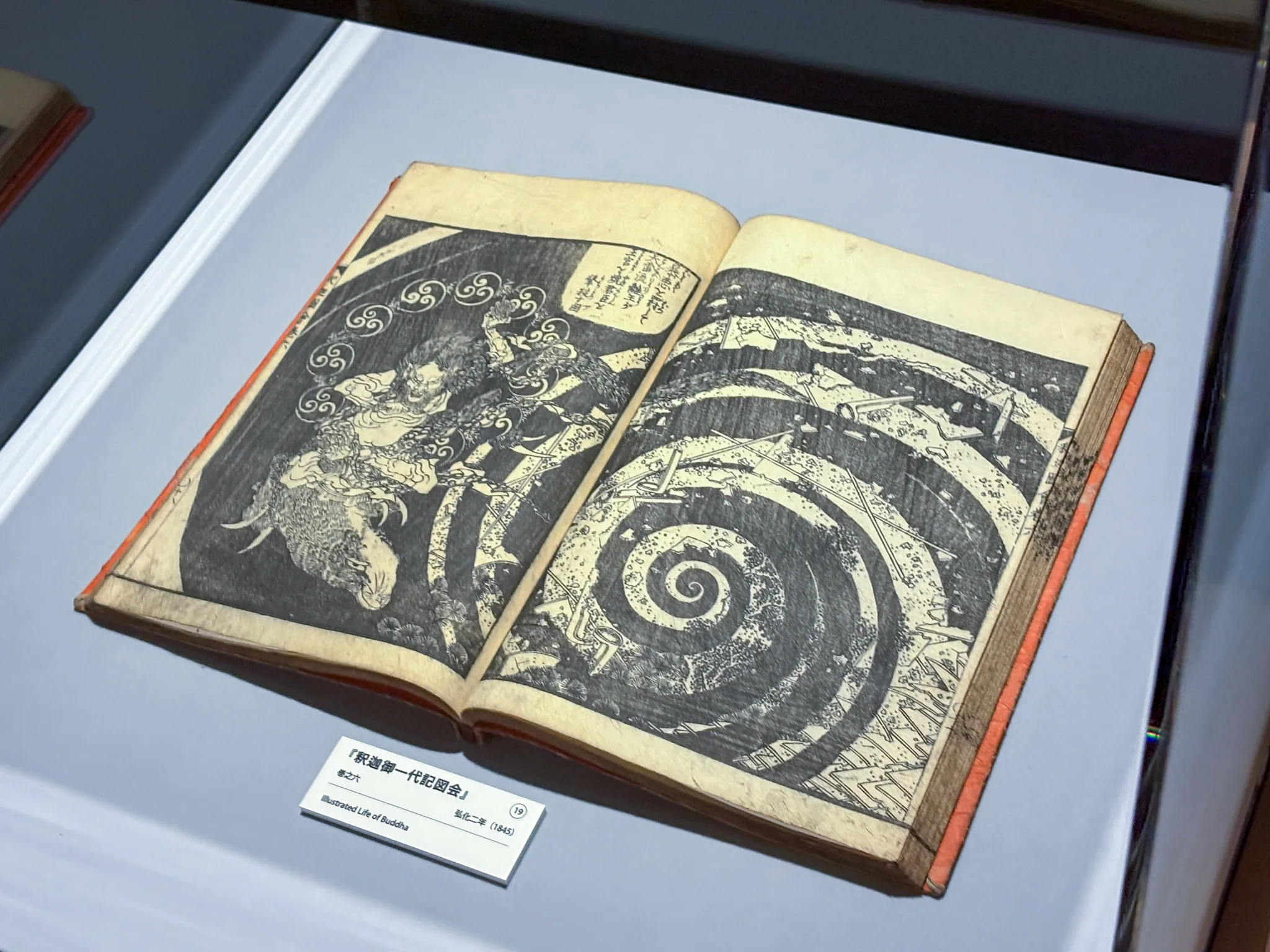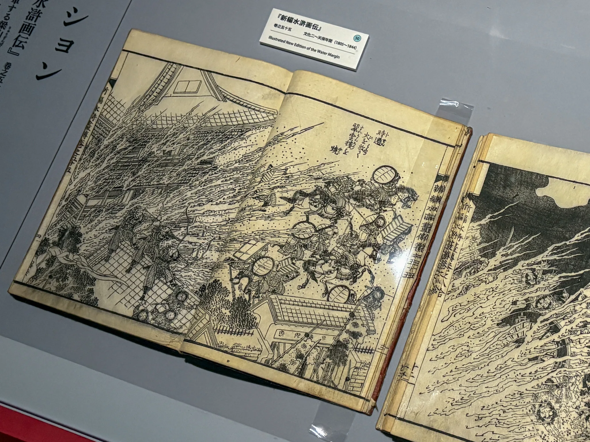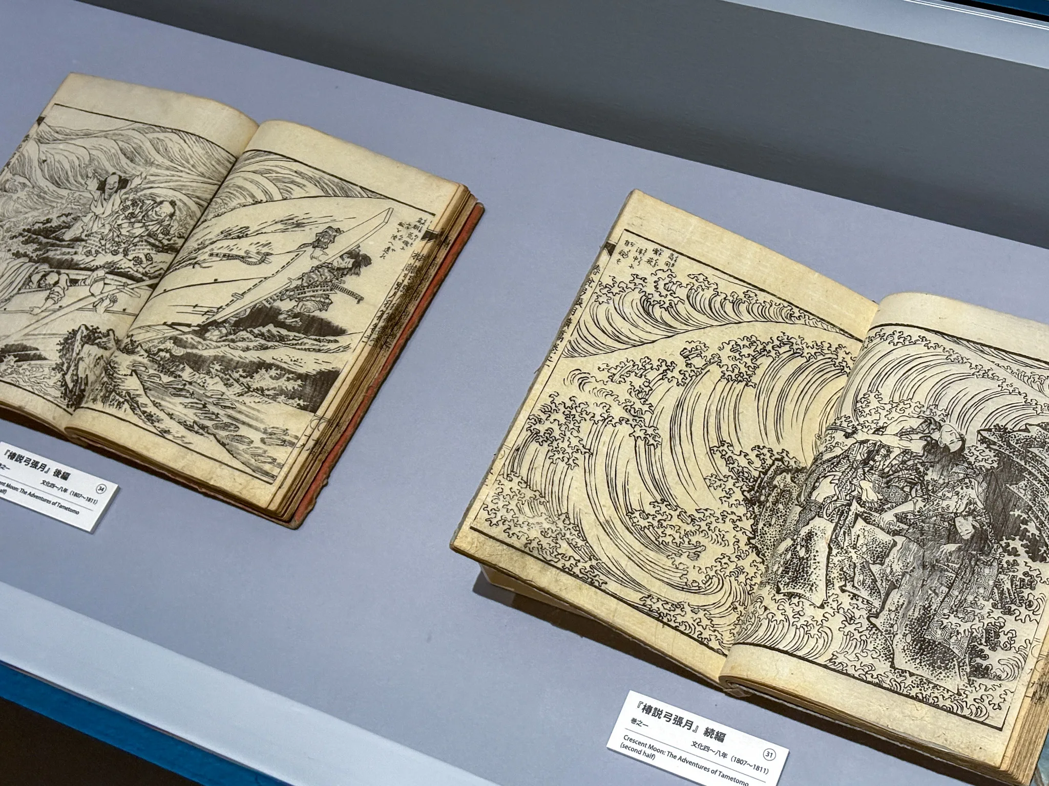 展覧会の冒頭では、北斎が曲亭馬琴とタッグを組んで作った「読本(どくほん)」が紹介される。馬琴はあの蔦屋重三郎に見出された江戸の売れっ子作家であり、ふたりは江戸の街に「読本ブーム」を巻き起こした。ここでは『椿説弓張月』『新編水滸画伝』そして『釈迦御一代記図会』の挿絵が展示されている。