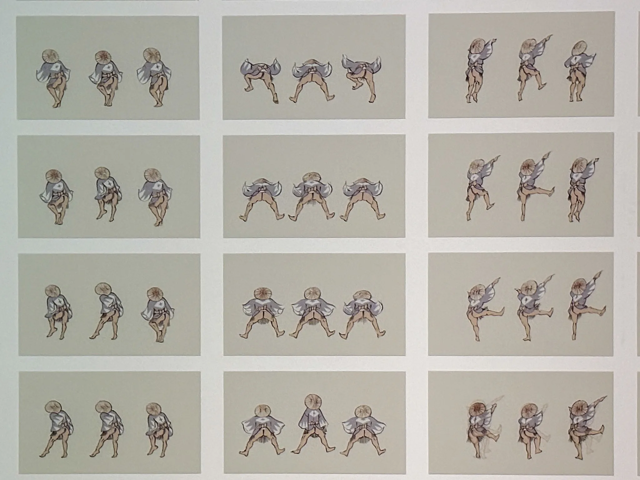 また、アニメーションの原型であるパラパラマンガのような表現にも注目したい。内覧会では「北斎がもし現代に生きていたらアニメを作っているのでは」(浦上)というコメントが出るほど、人物がいまにも動き出しそうに描かれている。本展では、『踊独稽古』『北斎漫画』より「雀踊り」と「武芸(棒術)」をアニメーション化して上映するコーナーもあった。
