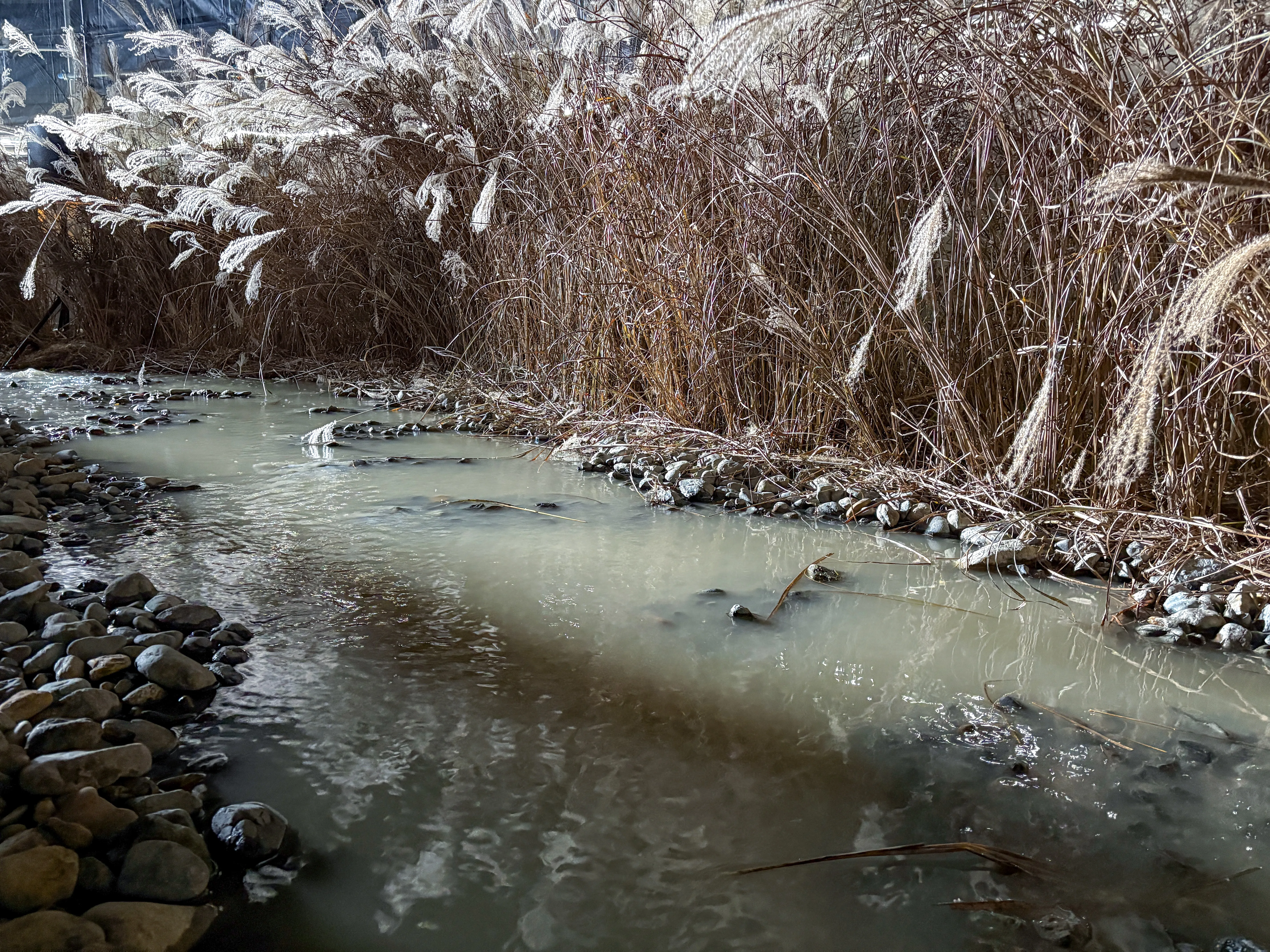 幼少期の思い出せそうで思い出せない記憶——砂利道をすすむ時に足を取られる感覚や、コンクリートで埋め立てられた土手から転げ落ちそうな恐怖、すすき原を歩き回る時の胸の高鳴りなど——を呼び起こす装置として機能する河川敷のインスタレーションは、作家本人が「風景のアーカイヴ」と表現する、同プロジェクトの大きなテーマに共鳴している。