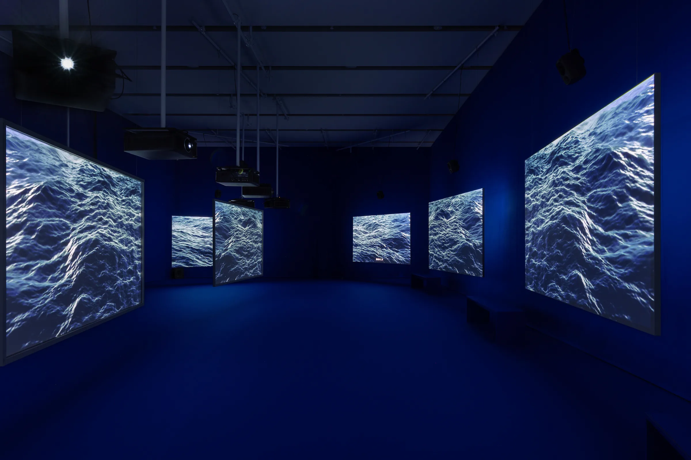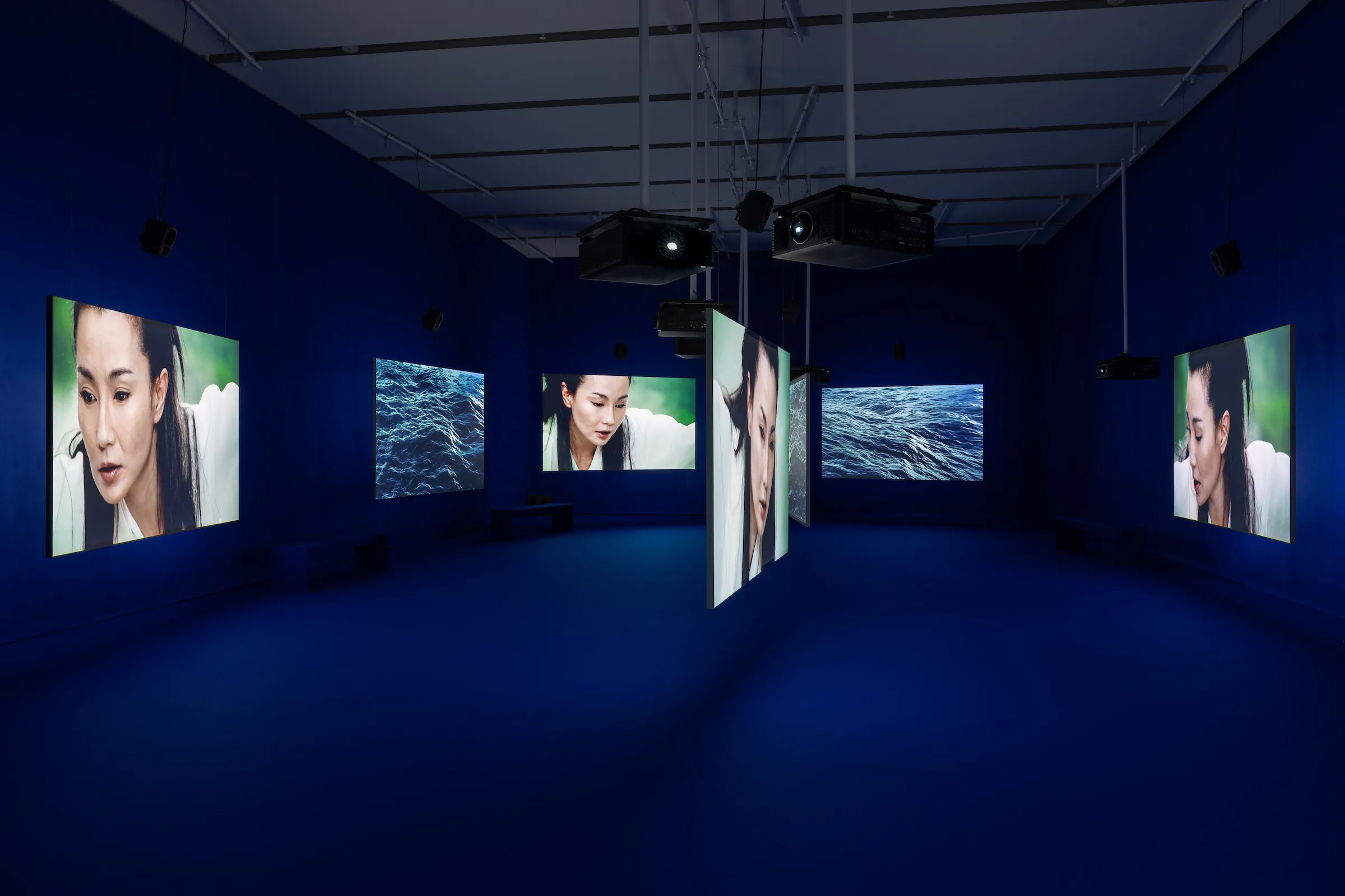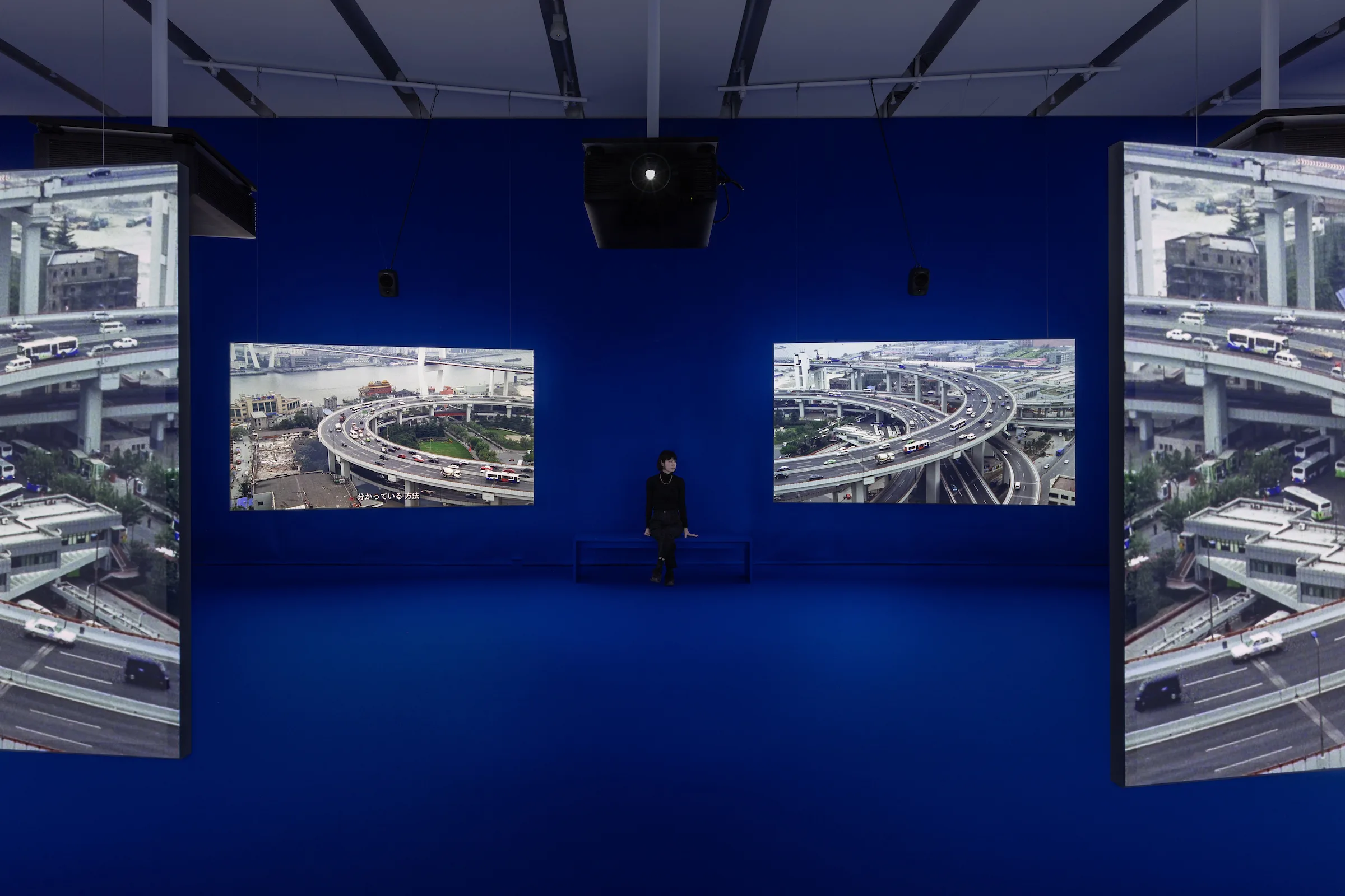 TEN THOUSAND WAVES 2010(アイザック・ジュリアン「Ten Thousand Waves」[エスパス ルイ・ヴィトン大阪]展示風景) 9スクリーンインスタレーション、デジタル変換された35mmフィルム、カラー、9.2サウンド Courtesy of the artist and Fondation Louis Vuitton, Paris © Jérémie Souteyrat / Louis Vuitton