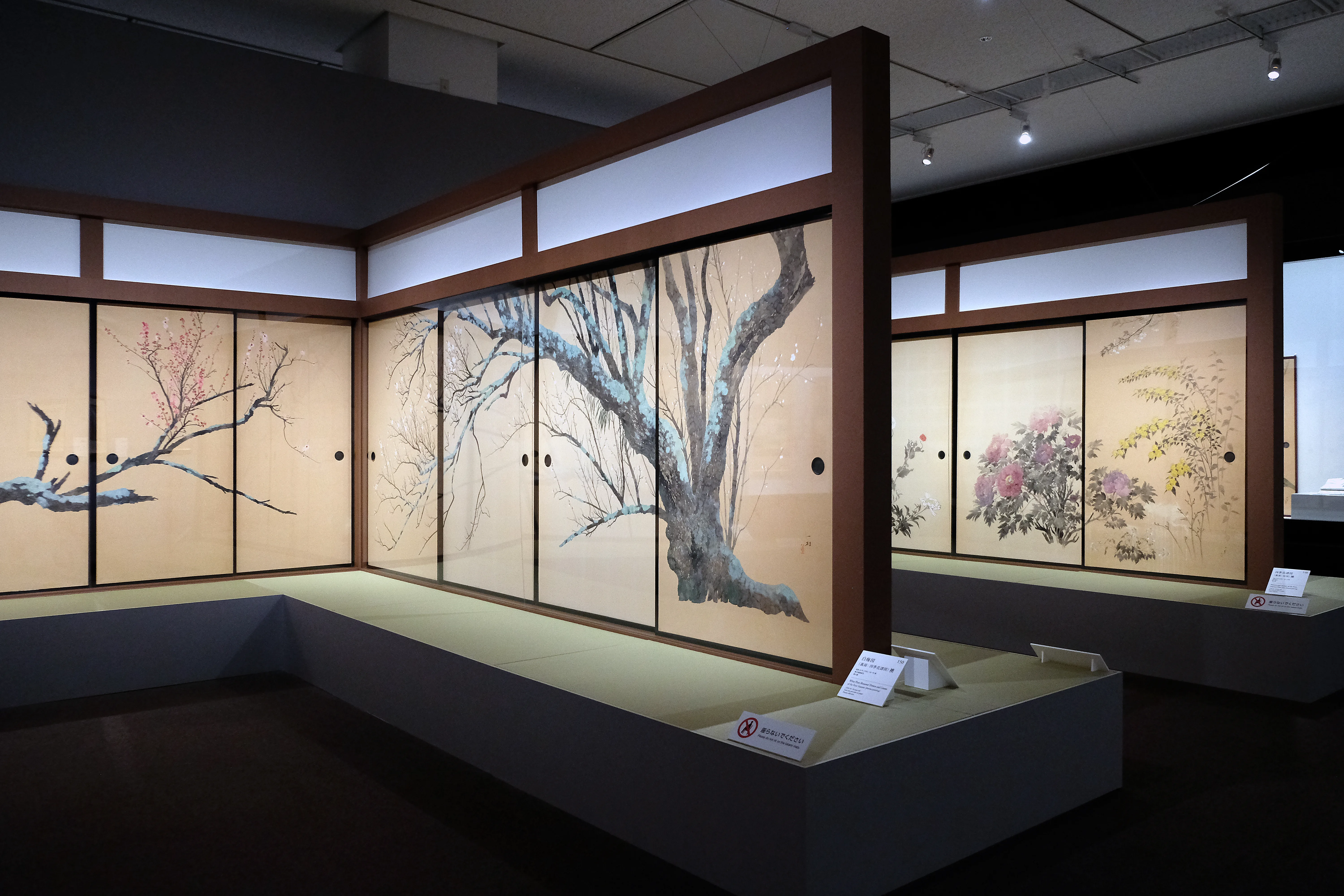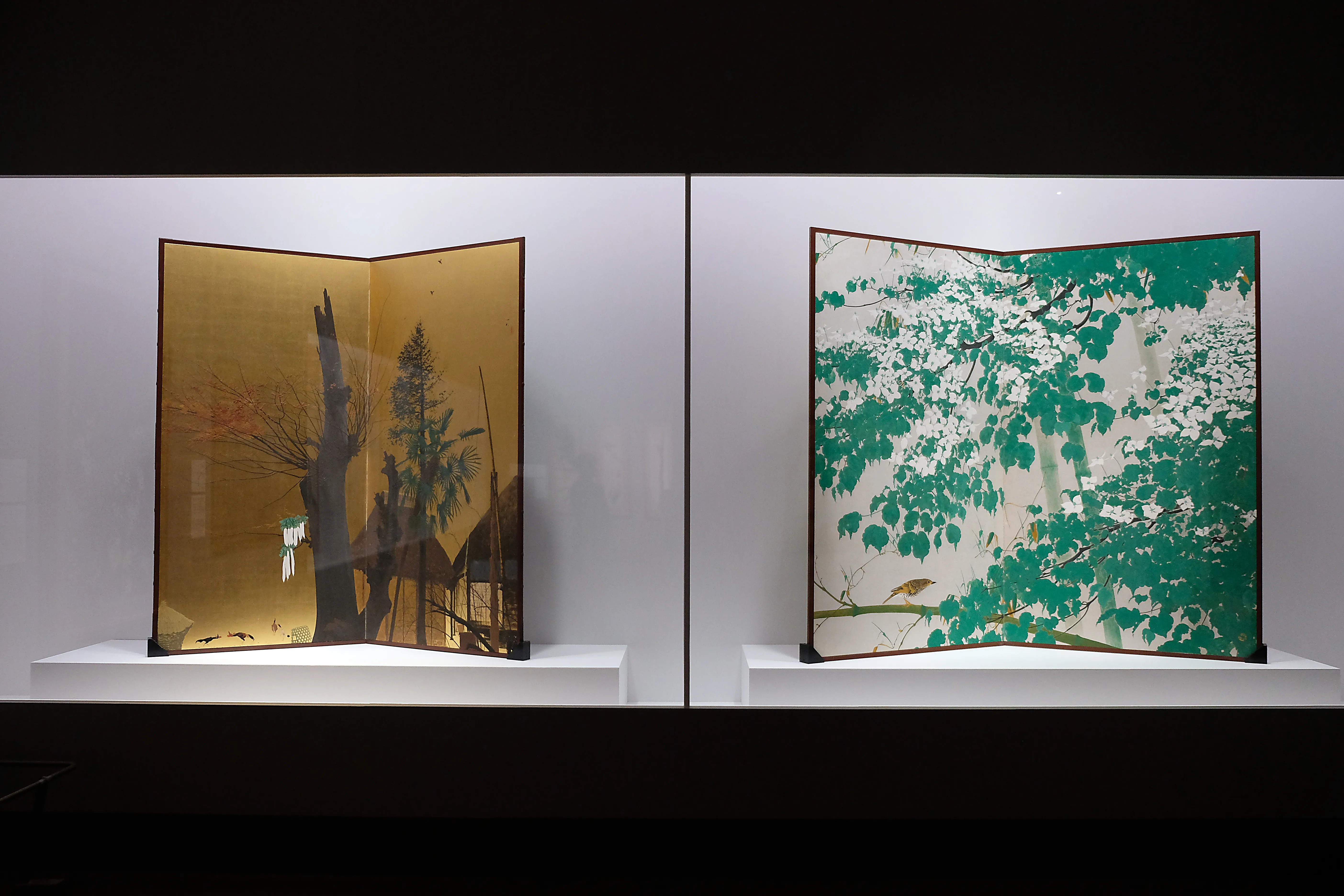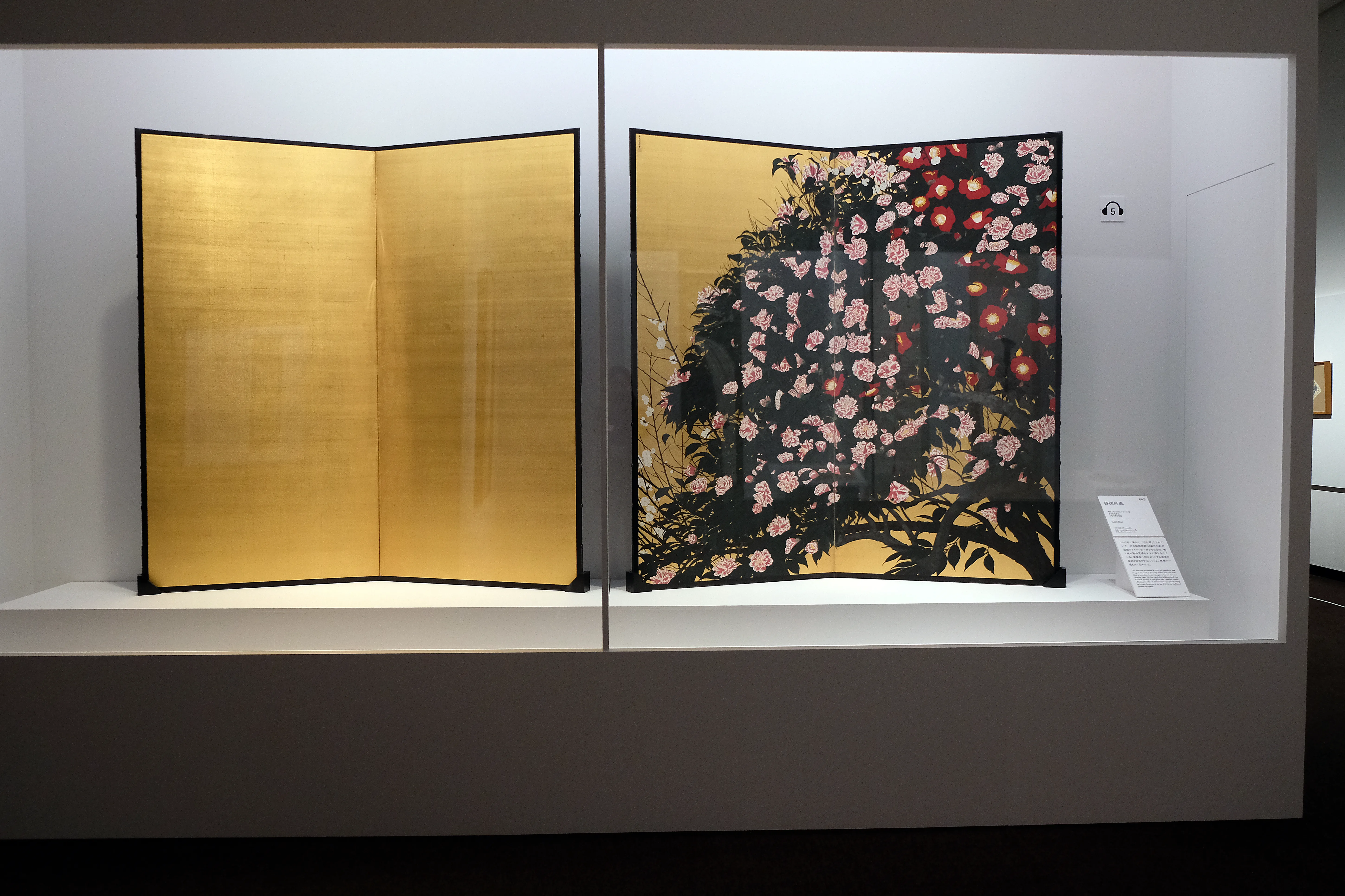 近年、一村の知名度と人気は急上昇し、それが端緒となり発見される作品も多い。《椿図屏風》もそのひとつで、2010年に千葉市美術館、鹿児島市立美術館、田中一村美術館で開催された「田中一村 新たなる全貌」の開催後に情報が寄せられ、2013年に一村の作品であると確認されたものだ。左隻は無地の金屏風であるが、その理由は現在のところわかっていない。
