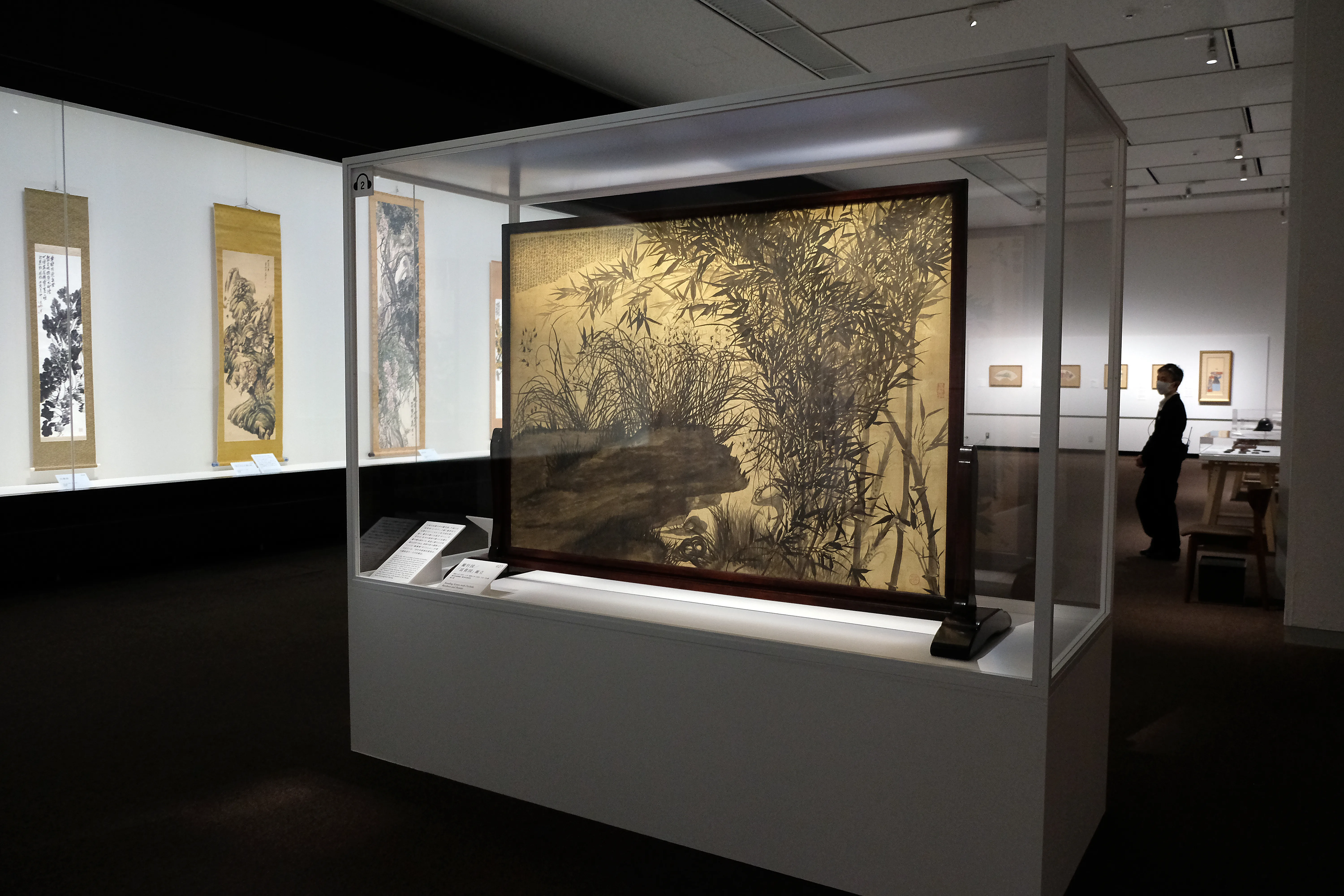 東京美術学校退学後、一村は南画家として身を立てつつ、独学で自らの芸術を探求していく。《蘭竹図/富貴図衝立》は、東京美術学校を自主退学後に制作された作品で、退学後に行われた「田中米邨画伯賛奨会」の賛助員に名を連ねていた医学者の旧蔵品だ。強い筆致で描かれた蘭竹図の裏側には、極彩色の富貴図が描かれている。