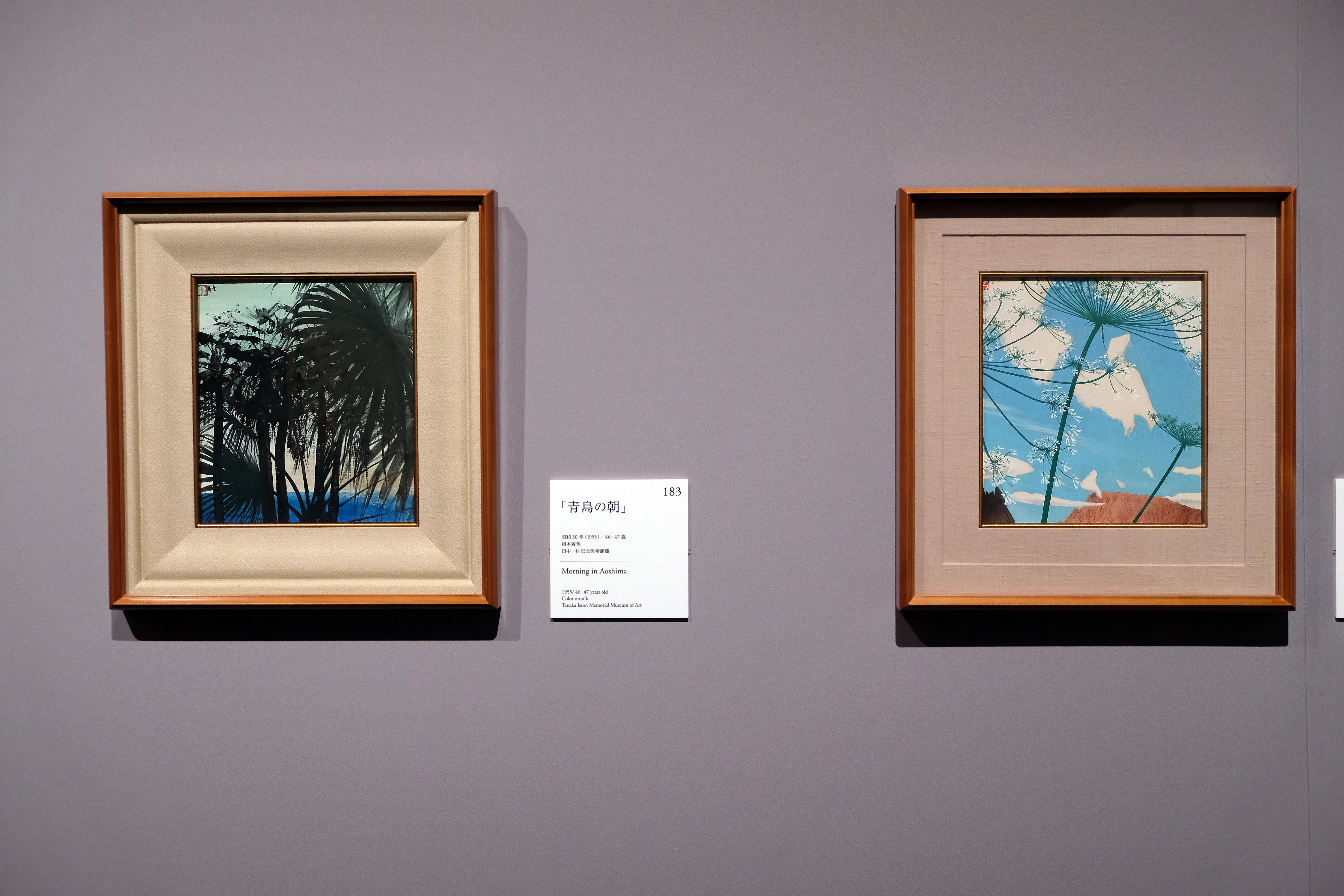 また同年、一村は九州、四国、紀州を巡る旅に出かけ、支援者に《ずしの花》や《青島の朝》のような、旅先の風景画を描いた色紙を送っている。明るく、開放的な色紙からはその後の人生にもつながる大きな転機が感じられる。