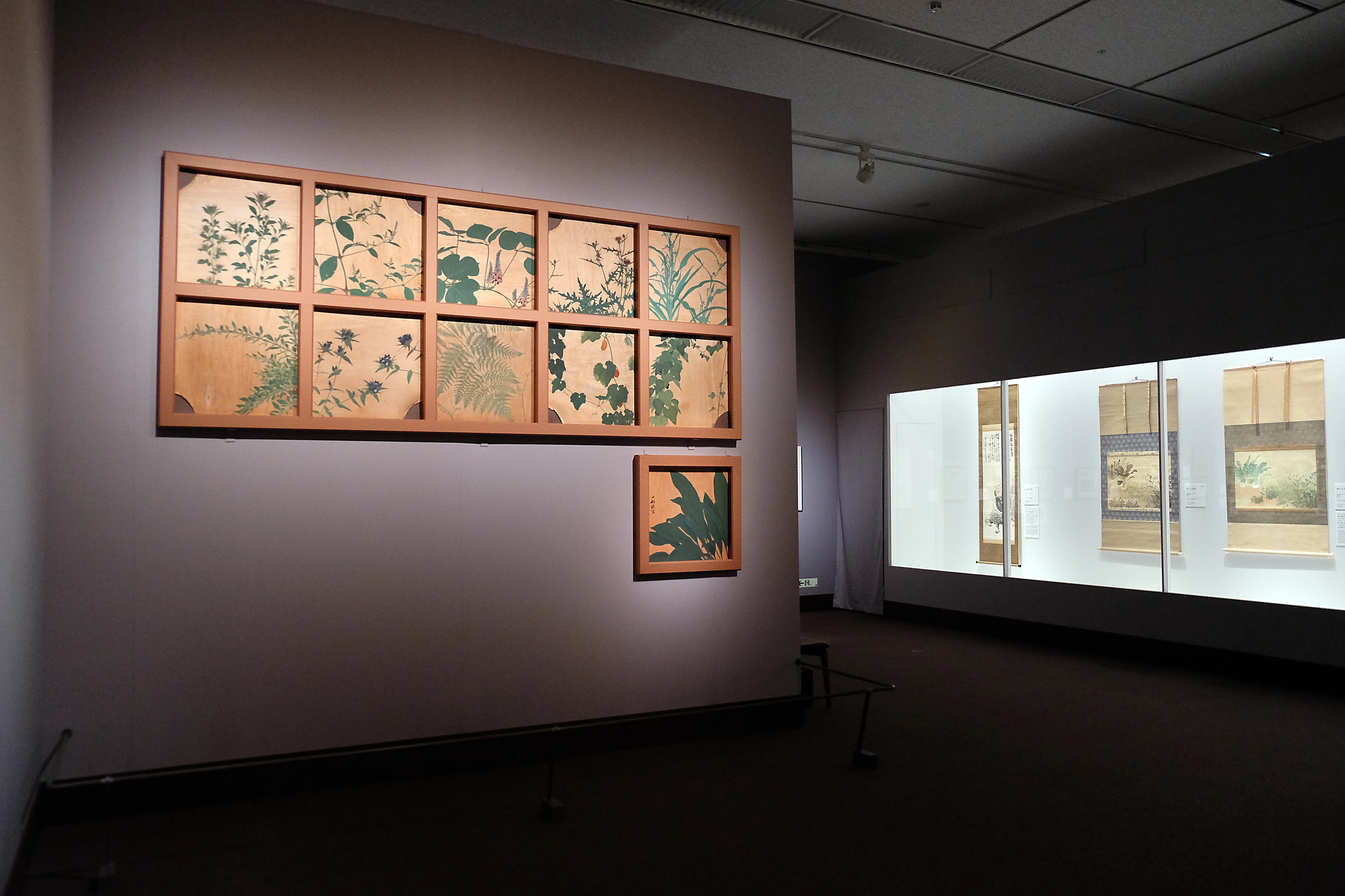1955年、一村は石川県羽咋郡のやわらぎの郷にある聖徳太子殿の天井画を描く依頼を受け49図を描いている。この制作のために一村は40日間同地に滞在し、周辺の野草をスケッチしたという。本展担当者の中原は第二章の解説を担当。「注目していただきたいのは、緑色の縁に群青色の絵具がはみ出している点です。まず群青色で下地を描いてからその上に緑色を乗せたということ。その結果、緑のニュアンスに富んだ植物の表情が出ている」と話した。