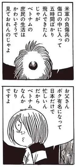 日本にも「ベトナム戦争時代」があった。日本とベトナム戦争は密接に結びついていた。そのつながりについて触れるうえで、ヒントとなるマンガがある。1968年に発表された『ゲゲゲの鬼太郎』の「ベトナム戦記」には、目玉の親父のイトコの「毛目玉」が、ベトナムから日本にやってきて助けを求めるシーンがでてくる。
