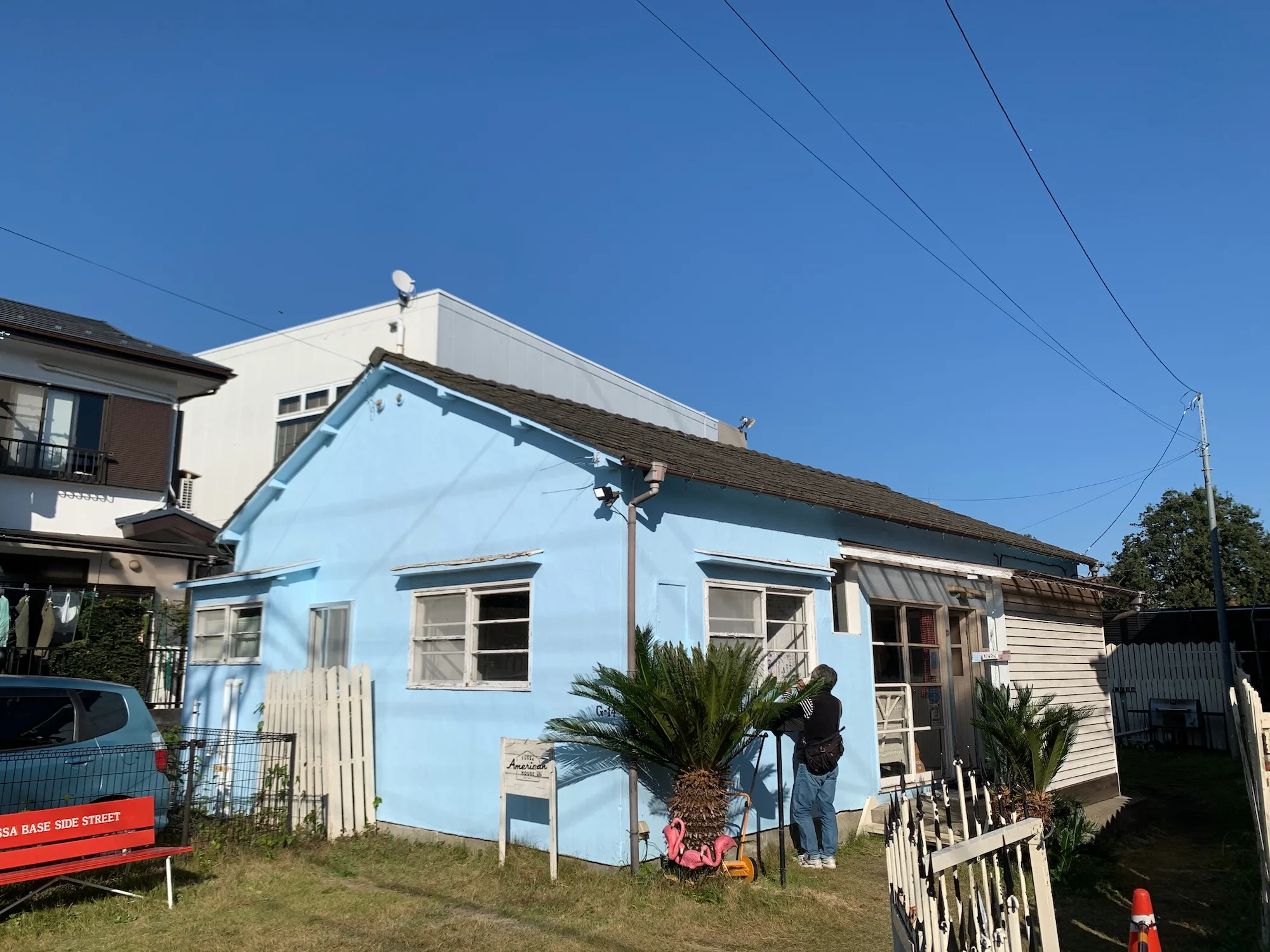 彼女が版画にしたこの場所は東京都の福生(ふっさ)市である。であるならば、描かれている家屋は抽象的な家屋一般ではありえない。はたして、「密告にご協力を!」と囁かれるこの一戸建て住宅は、戦争の激化に伴って増加したアメリカ兵たちのための基地外住宅──通称「米軍ハウス」であった。