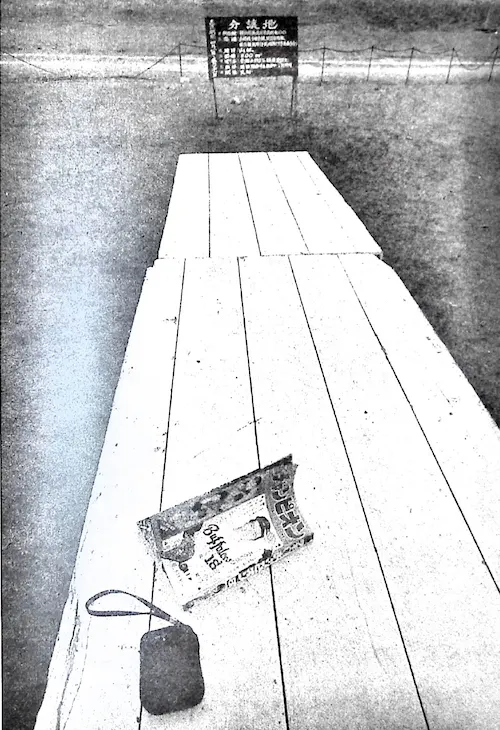 コンクリートブロックに「HERE」と書き入れた作品を発表していた板東胡江(ひさえ)もまた、検閲を受けた作家のひとりである。彼女は「『分譲地』という立看板の作品に、売出期間四月一日〜五月三十一日と記し、所在地、面積、建ぺい率、価格、環境を描き入れた」(*10)のであるが、こどもの国管理事務所から、「番地(所在地)」と「こどもの国」という名前の箇所を消すよう要求される。板東のようにこどもの国がどのような来歴を伴った土地であるのかを批判的に考察する作家はほかにもおり(*11)、検閲への抗議以前から、参加作家による現代美術野外フェスティバルに向けての批判は行われていたようである。実行委員会が当初こどもの国側に提出していた企画書を読むと、そこには「弾薬庫の平和利用」と書かれており、企画側の「方便」を認めることができる。
