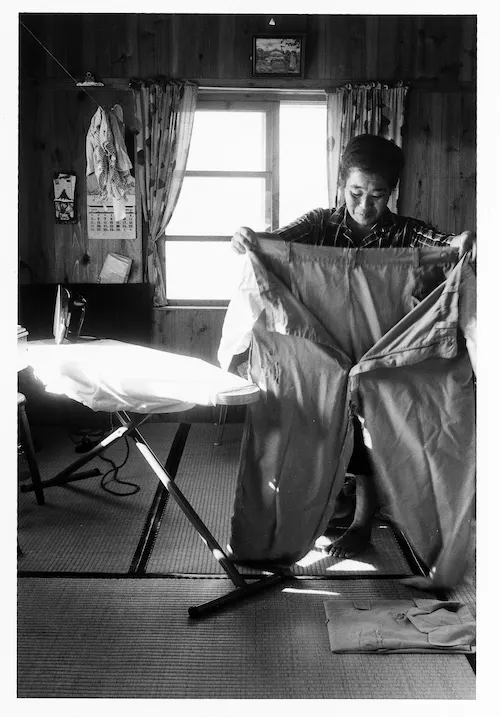 「百日間歩きつづけた沖繩側の代表二人と本土側の代表二人に、計四百枚の写真をプレゼントするため、その処理をどうしても自分でしなければ、金と気がおさまらなかった。赤と黒の布で自室に『暗室』を作り、手製の写真集まで作って配布した。」(*15)
