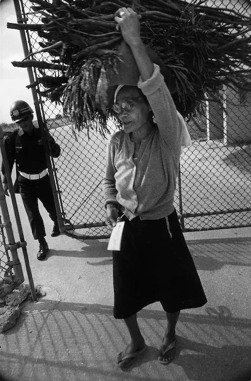 「この写真をみたある写真評論家が、『女性カメラマンでなければ、米軍の報道管制下で撮影することはできなかっただろう』と評してくださったが、そんなものかとさしてありがたく思わなかった」と嬉野は別の場所で振り返っているが、撮影に際しての経緯を鑑みれば、その評論家は二重三重に事態を矮小化している(*21)。嬉野にとって「この写真は、沖縄の人たちが撮ったものであり」、自分は「シャッターを押しただけ」だった(*22)。沖縄の理不尽な現実の現れとしてその後広く知られることになるこの写真は、「余分な映りこみ」によって存在が可能となっている。