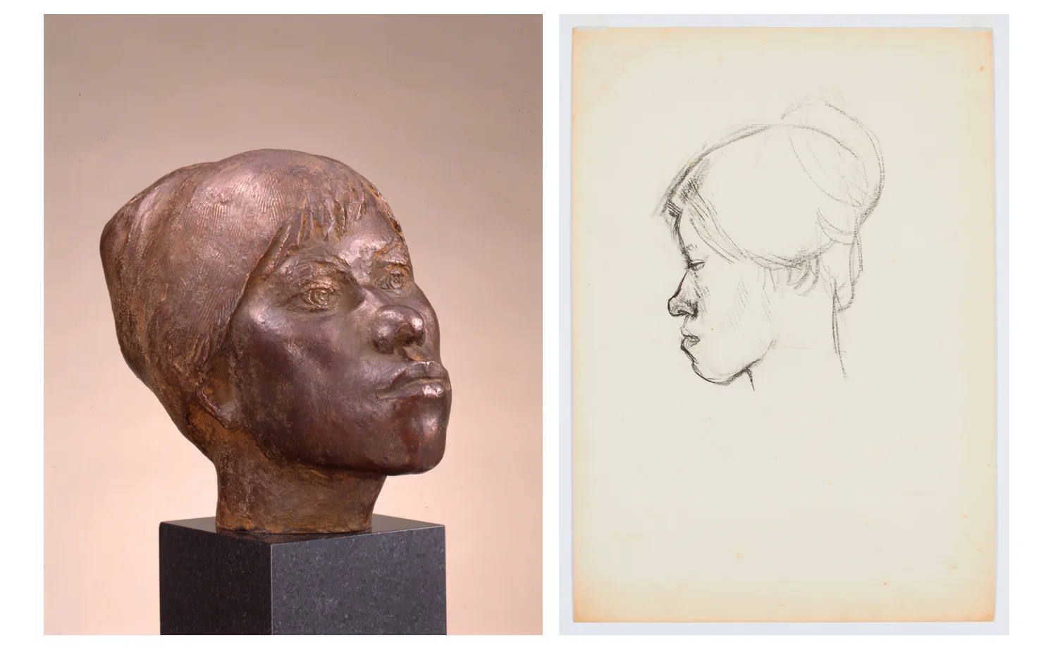 嬉野京子は東京の高校を卒業後、桑沢デザイン研究所でスタッフとして働きつつ夜学部に通った(*11)。そこで、シベリア抑留から生還した彫刻家・佐藤忠良(1912〜2011)(*12)や、画家の朝倉摂(1922〜2014)ら講師陣と出会い、親交を深めている。朝倉は嬉野ら学生と60年安保デモに参加しているし、佐藤は嬉野をモデルにデッサンや彫刻を制作してもいる。