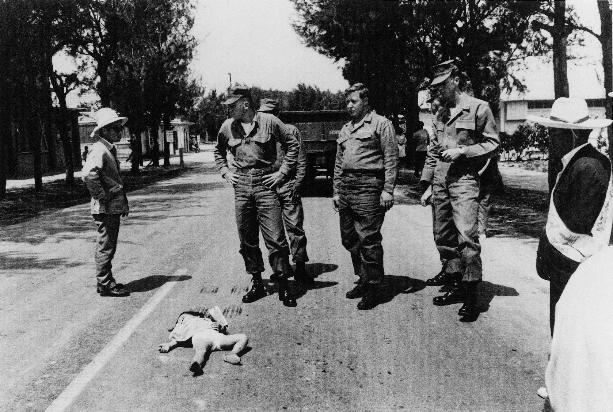 こうして撮影された写真は、写真右端にカメラを隠す「肩」が映りこみ、少女の遺体の左側には米兵がカメラを見ないように注意をひく「男性」が映りこむこととなった。