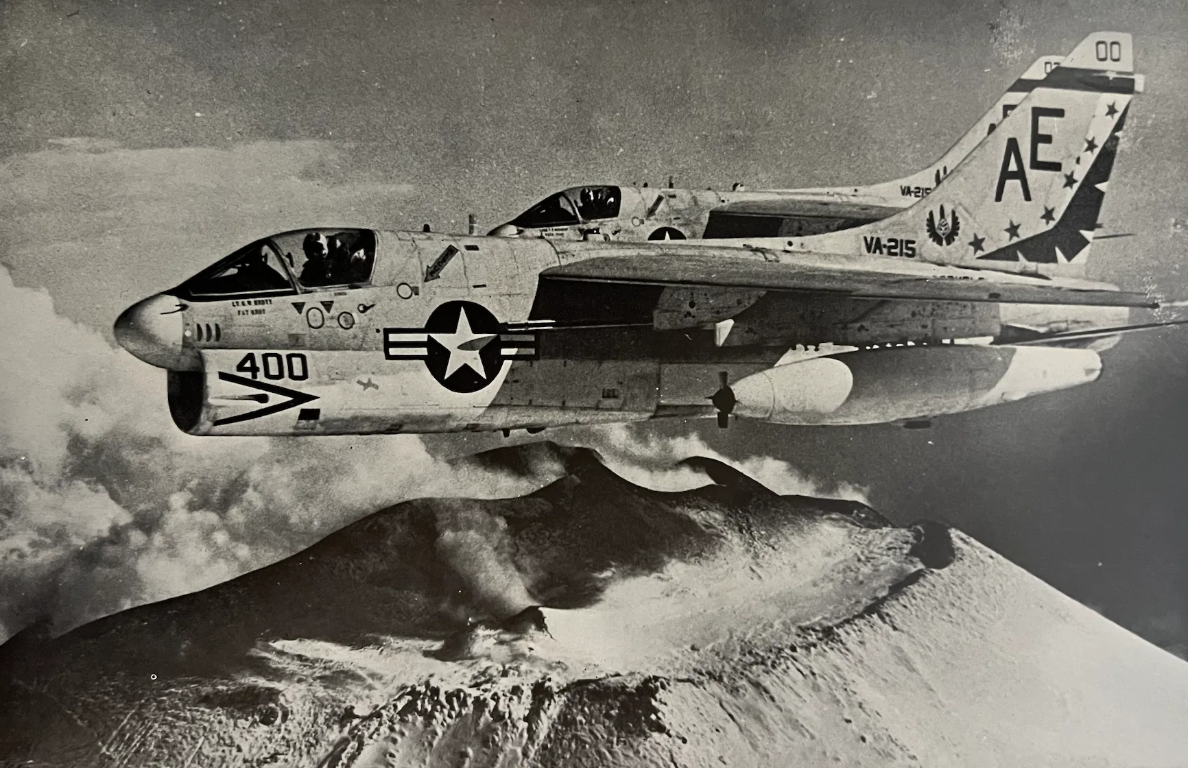 冒頭に紹介した『美術手帖』において、原口は「ヴェトナム海域」での情景を「あまりにも自然」で「リアルな日常のなかの当たり前の風景」であると書いていた。しかし、その元になっているであろう──改めて書くが、原口の戦闘機表象には専門誌からの写真や図面、解説による情報の調達が不可欠である──に写っているのは、ベトナムではなく、イタリア・シシリー島なのである(背景はシシリー島の名所・エトナ火山のクレーターであるから、この写真自体かなり「観光」的な、狙ったものである)。撮影場所を含む詳細な情報が写真には付記されているため、原口は撮影場所をわかったうえで、2機のコルセアⅡが「ヴェトナム海域を飛んでいる」と想像しながら描き写したことになる。