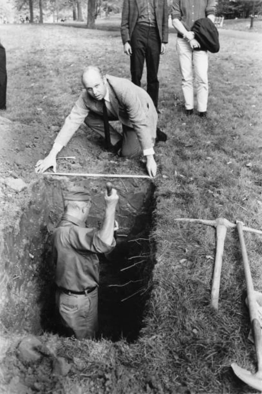 クレス・オルデンバーグ(1929〜2022)は1965年ごろから架空の記念碑のドローイングを発表していたが、1967年にはついにニューヨークのセントラルパークで墓掘り人に委託して穴を堀ってもらう作品を制作する(*9)。『芸術新潮』でその作品を知り興味を抱いた福岡は、「掘った土をオルデンバーグがプレゼントしてくれたとしたら」という想像を膨らませて作品を制作した(*10)。いわば、ニューヨークと神戸にあるふたつの公園をつないで、《位相-大地》的な事態が発生している、ということになる。