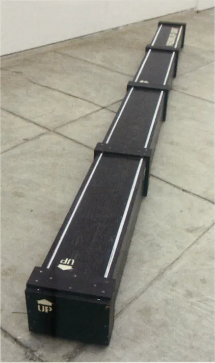 1968年の晩秋、卒展での《Tardiology》発表に向けて段ボールの壁面づくりに取り掛かった野村は、引っ越し屋から手に入れたという158cm×229cmという大型の段ボール板(Wフルート / 8mm)を2枚から3枚かさね、木工用ボンドで圧着・拡大する作業を繰り返した(*26)。当初は5段のユニットを横並びに連結してからクレーンで垂直に立てる方法を想定していたが、搬入時に難しいと判断し、高さは4段へと切り替えられた(*27)。