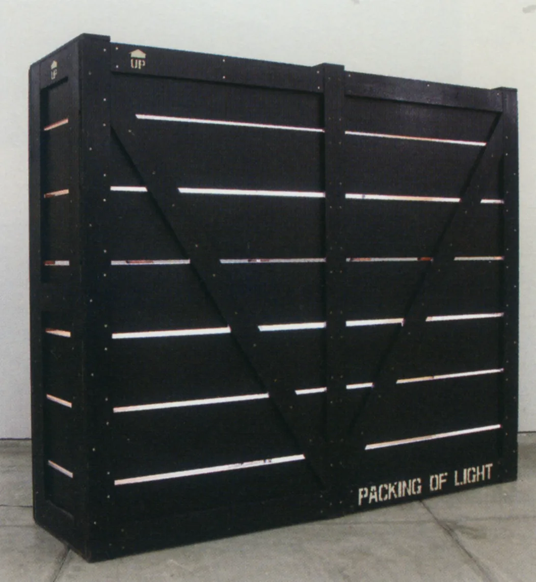 「ぜんたいの印象として作品がまだまだ室内楽的」とも評された野外彫刻展であるが(*11)、福岡の作品は(美術関係者への内向きな目配せは別として)展覧会の「外」の時空間を想起させるものだ。「この木箱が本当にアメリカからやってきてるのだとしたら、どのように運ばれたのだろうか?」──すなわち「ロジスティクス(物流)」をめぐる問いである(*12)。