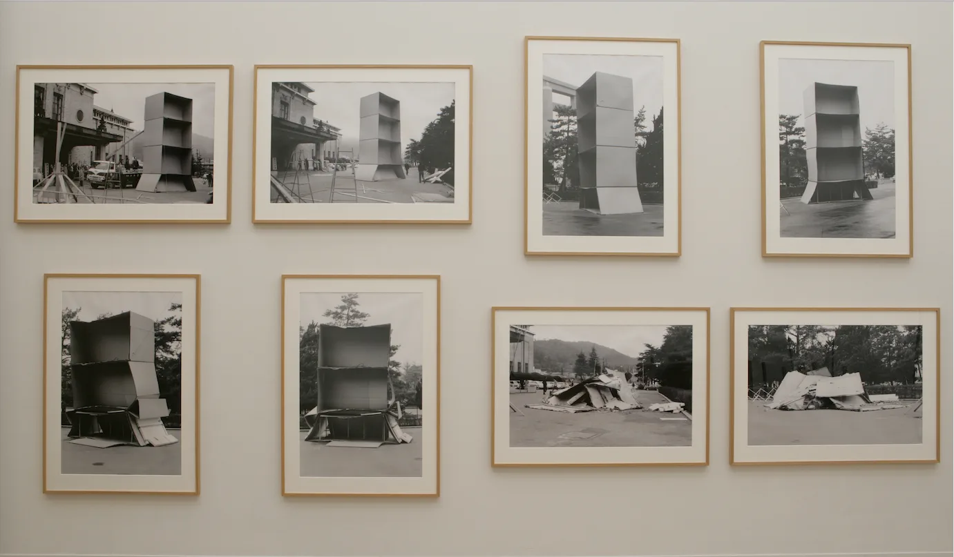 1969年の3月、京都市立美術館の前庭に8mにも及ぶ段ボール製の構造体が設置される。野村仁(1945〜2023)の《Tardiology》(1968〜69)(*22)である。雨や風や重力など、外的な諸力によって色や形が変容(崩壊)していく段ボールをそのまま受け入れ、プロセスの節目ごとにシャッターを切って記録していくこの作品は、段ボールの構造体が作品であるとも言えるし、残された記録写真こそが作品であるとも言える。