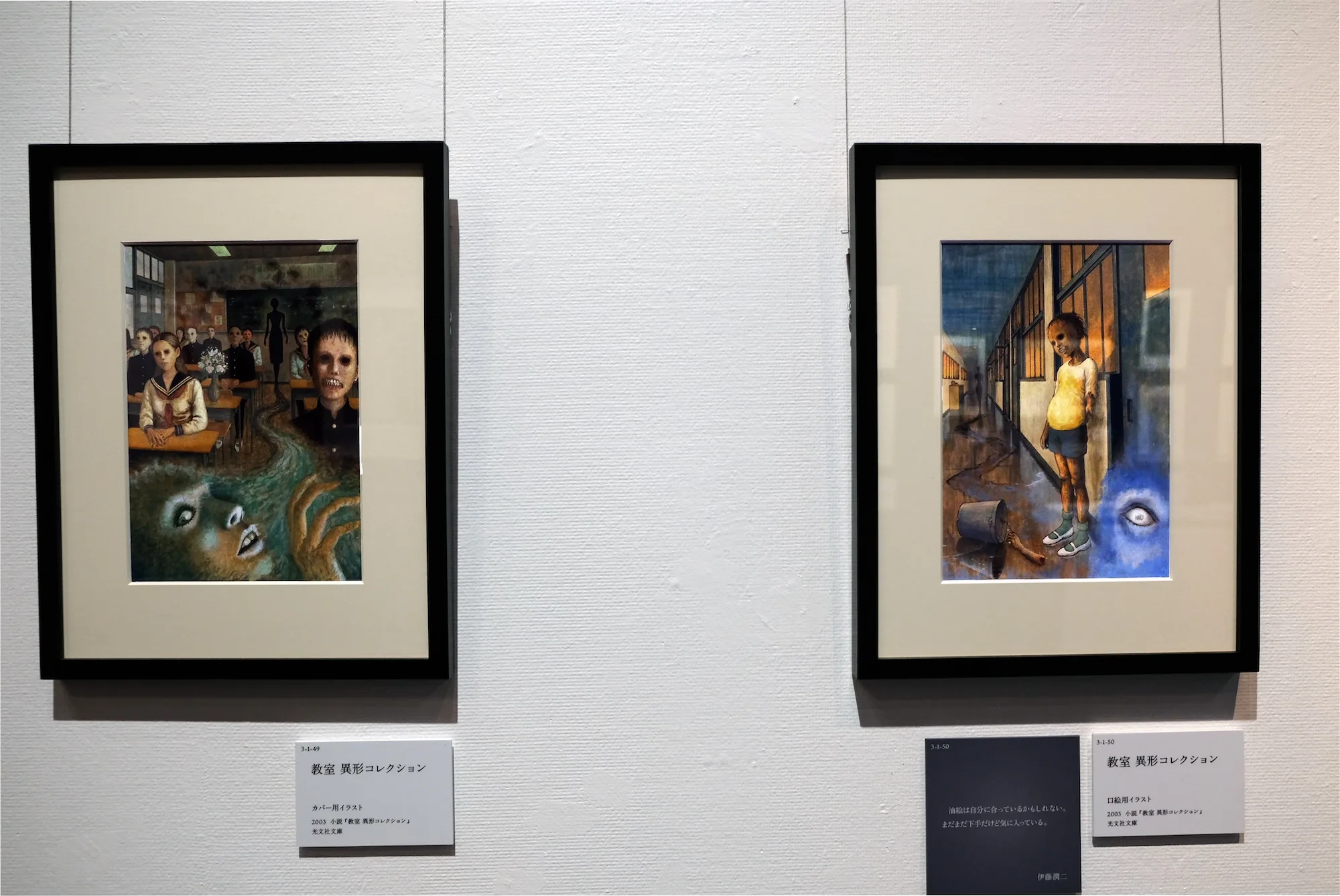 「第3章 怪画」は伊藤がこれまで描いてきた扉絵やイラストなどを取り上げる。水彩や油彩など様々な画材を巧みに使いこなし、美しく描写する伊藤の画力があるからこそ、奇想天外で驚くようなストーリーが私達の心に迫るものになっていることを実感させる。