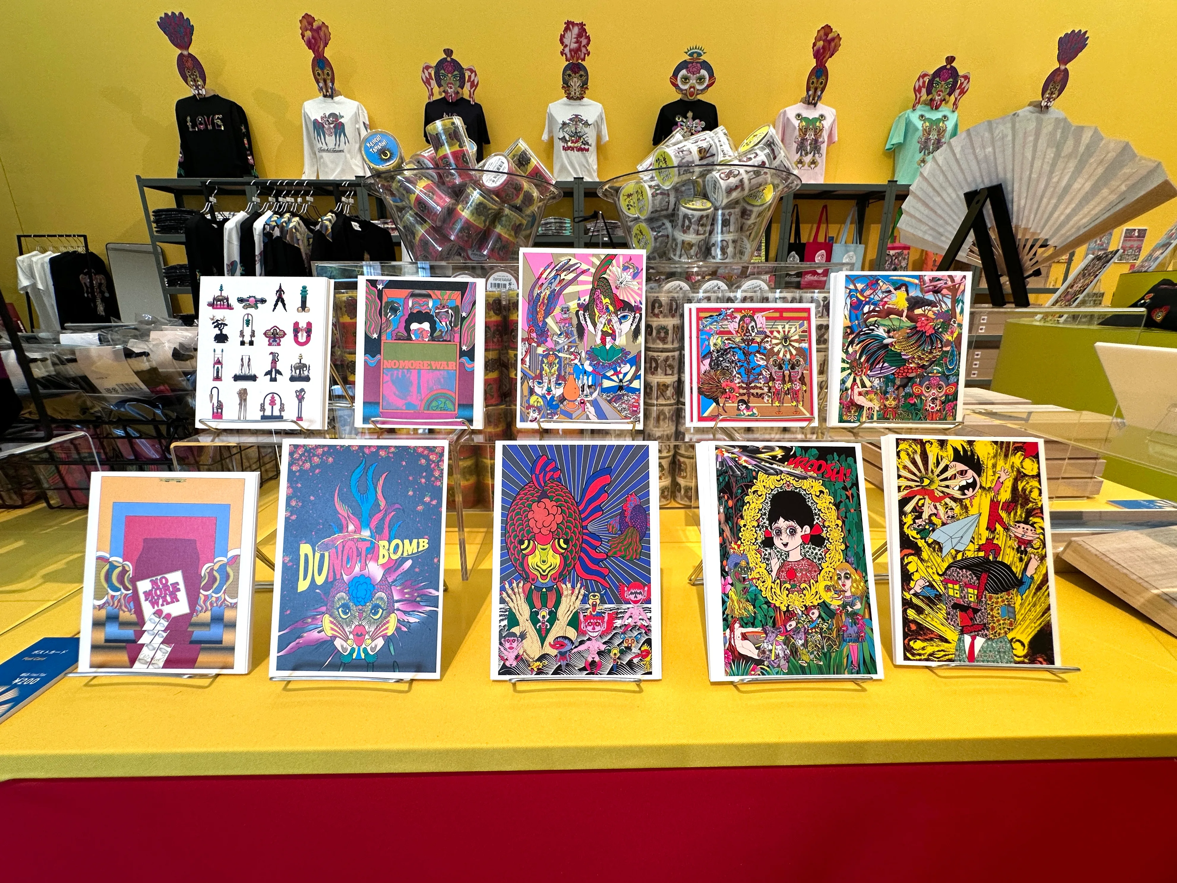 このほかにも、「バービー」で知られるマテルクリエーションズとのコラボレーション商品、集英社マンガアートヘリテージとコラボレーションし、角度を変えると絵柄が変化するレンチキュラー印刷のメタリックなタロットなど、展覧会と同様めくるめく世界が展開されている。
