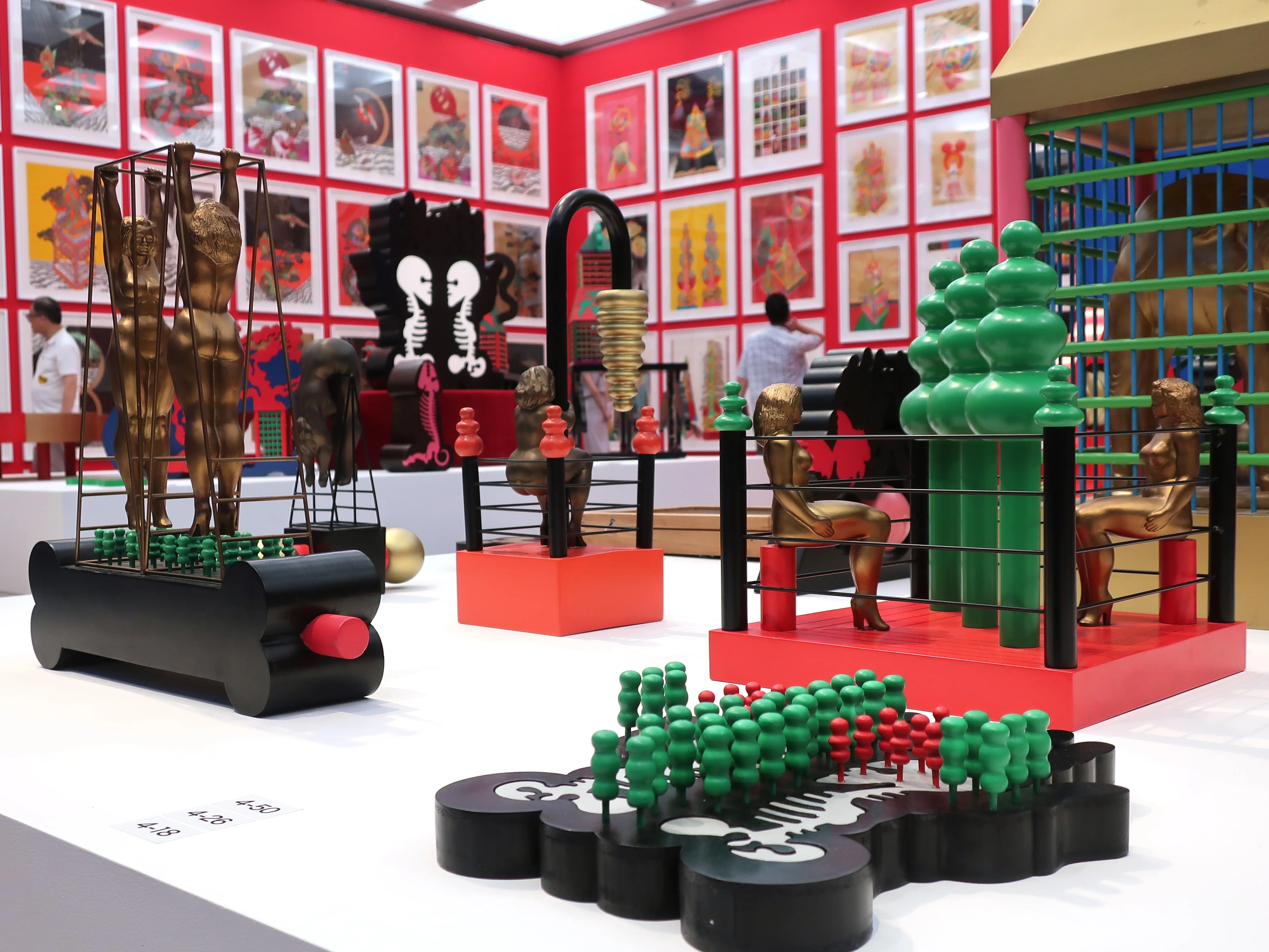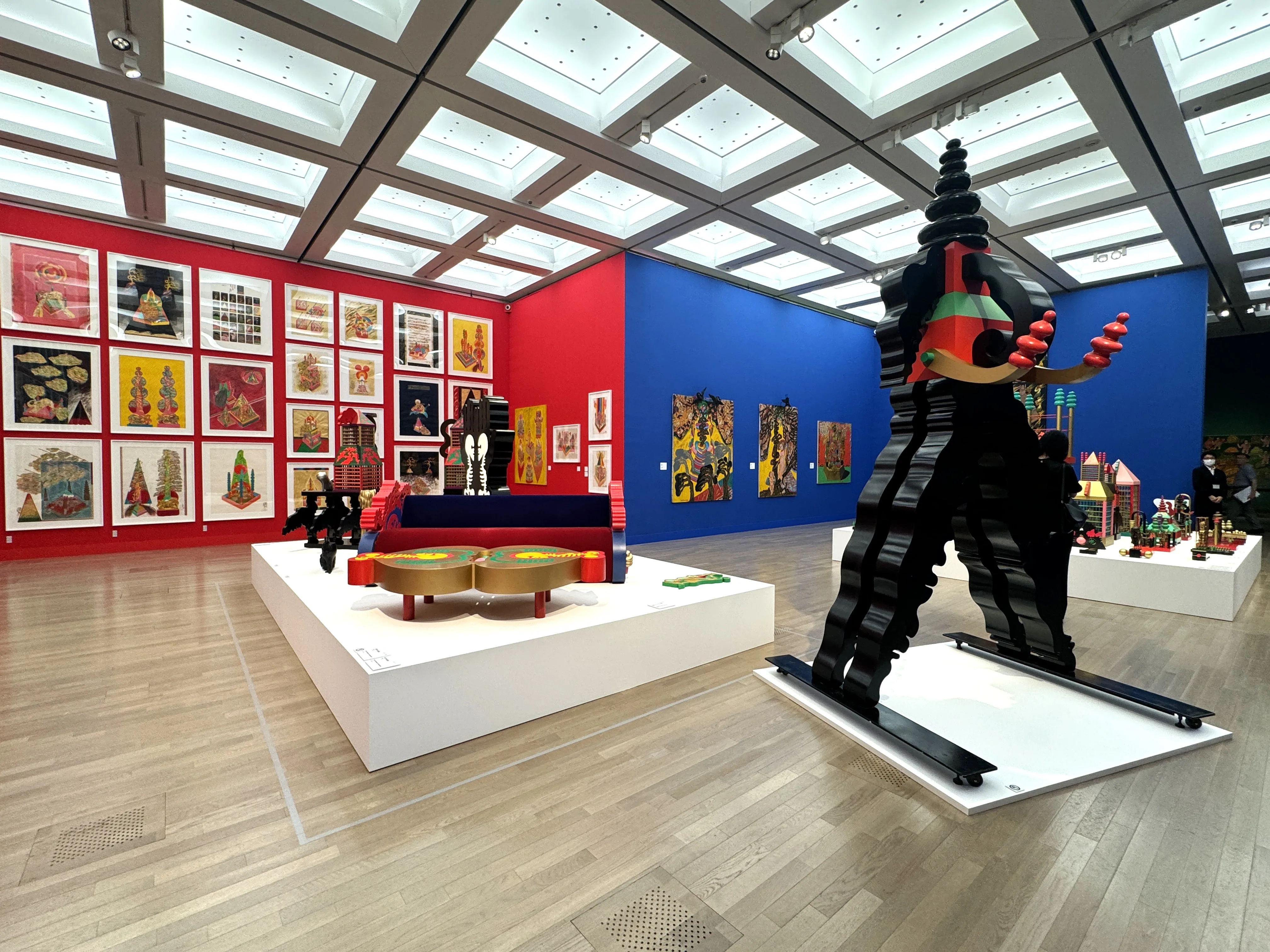 第4章「人工の楽園」では、1970年代の作風から一変し、幻覚や夢で見たイメージや、1980年に中国へ旅をして以来、傾倒していった神仙思想、鶴と亀といったアジアの吉祥文様などをモチーフに、より緻密な表現へと進化した大判のシルクスクリーン作品や絵画、幻覚と幼少期に遊んだ積み木の記憶から想起したという大小様々な立体作品が展示されている。