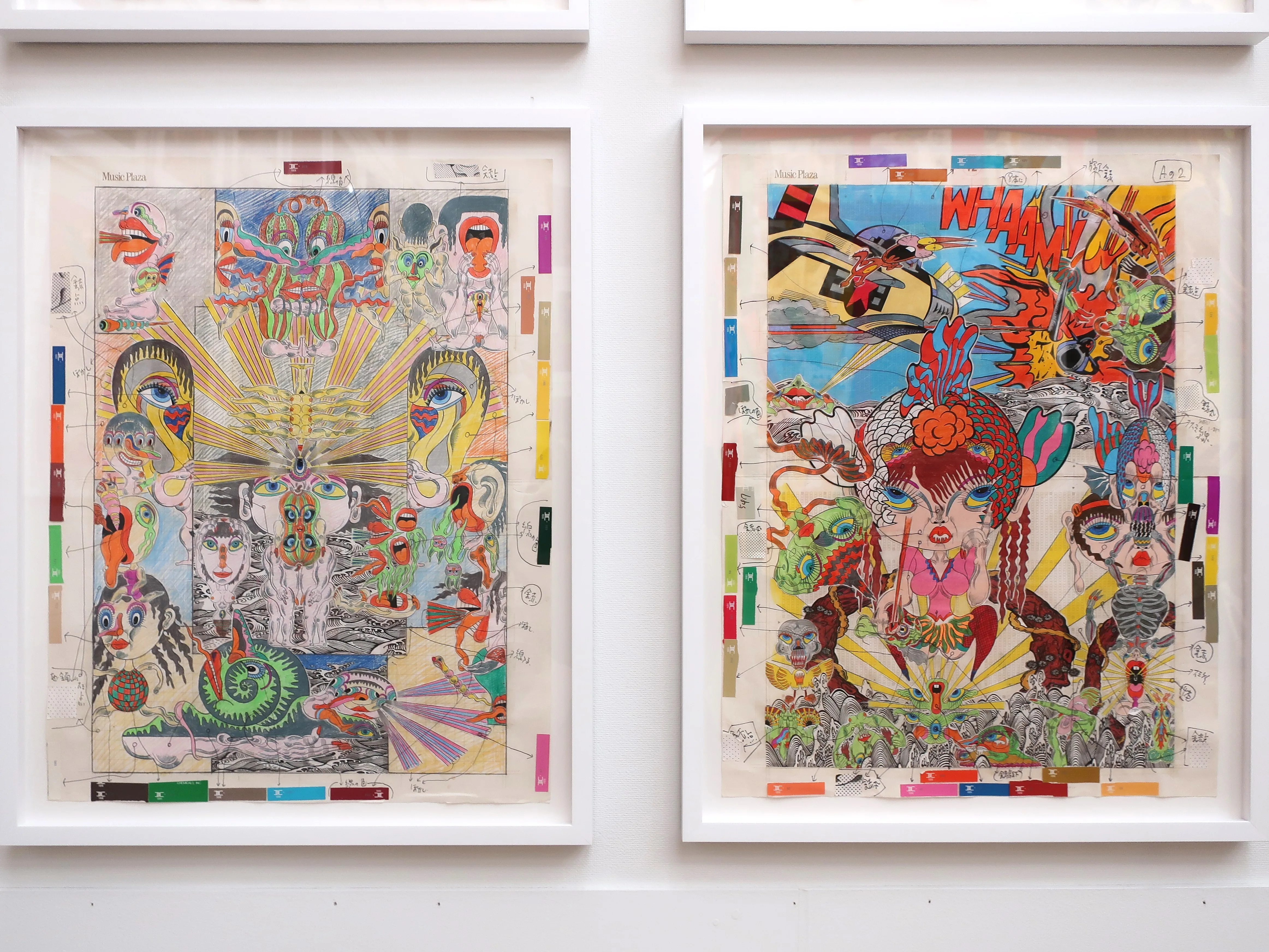 続く第11章「田名網敬一×赤塚不二夫」では、ほぼ同世代であり敬愛してきた漫画家、赤塚不二夫(1935~2008)が描いたキャラクターらをオマージュした作品群を展示している。