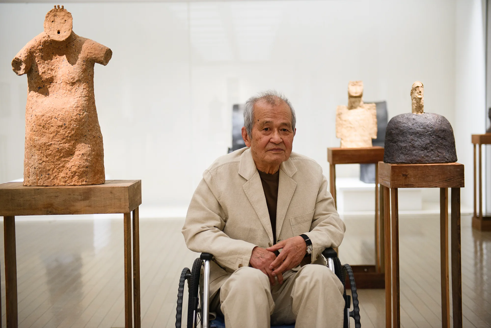 保坂健二朗(以下、保坂) 昨年の夏に、窯のあるスタジオとご自宅の中にある絵を描くためのアトリエ、そしてたくさんの作品を保管されている倉庫に伺ったのですが、陶器や陶彫だけではなく、絵も描かれているようにいろいろなタイプの作品があって、今回の展示が磯崎新さんが設計された美術館の中でどのような内容になるのか、とても楽しみにしていました。最初から最後まで、全体的に幸せなトーンが通底していると感じましたが、途中に「HIROSHIMA」のシリーズが展示されているなど、静かに感情に訴えかけてくるパートもあり、抑揚も含めてとても素晴らしい展覧会だと感じました。