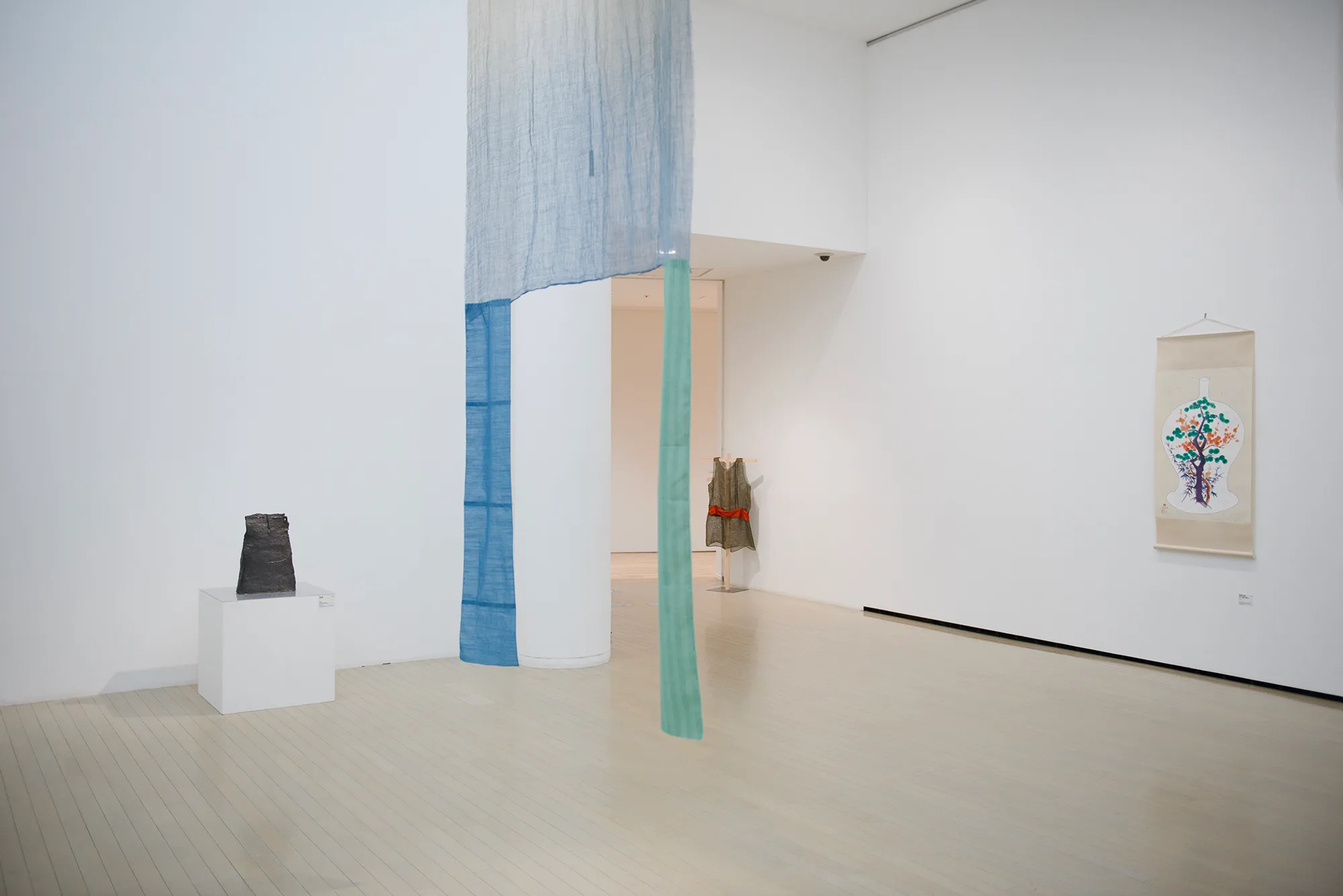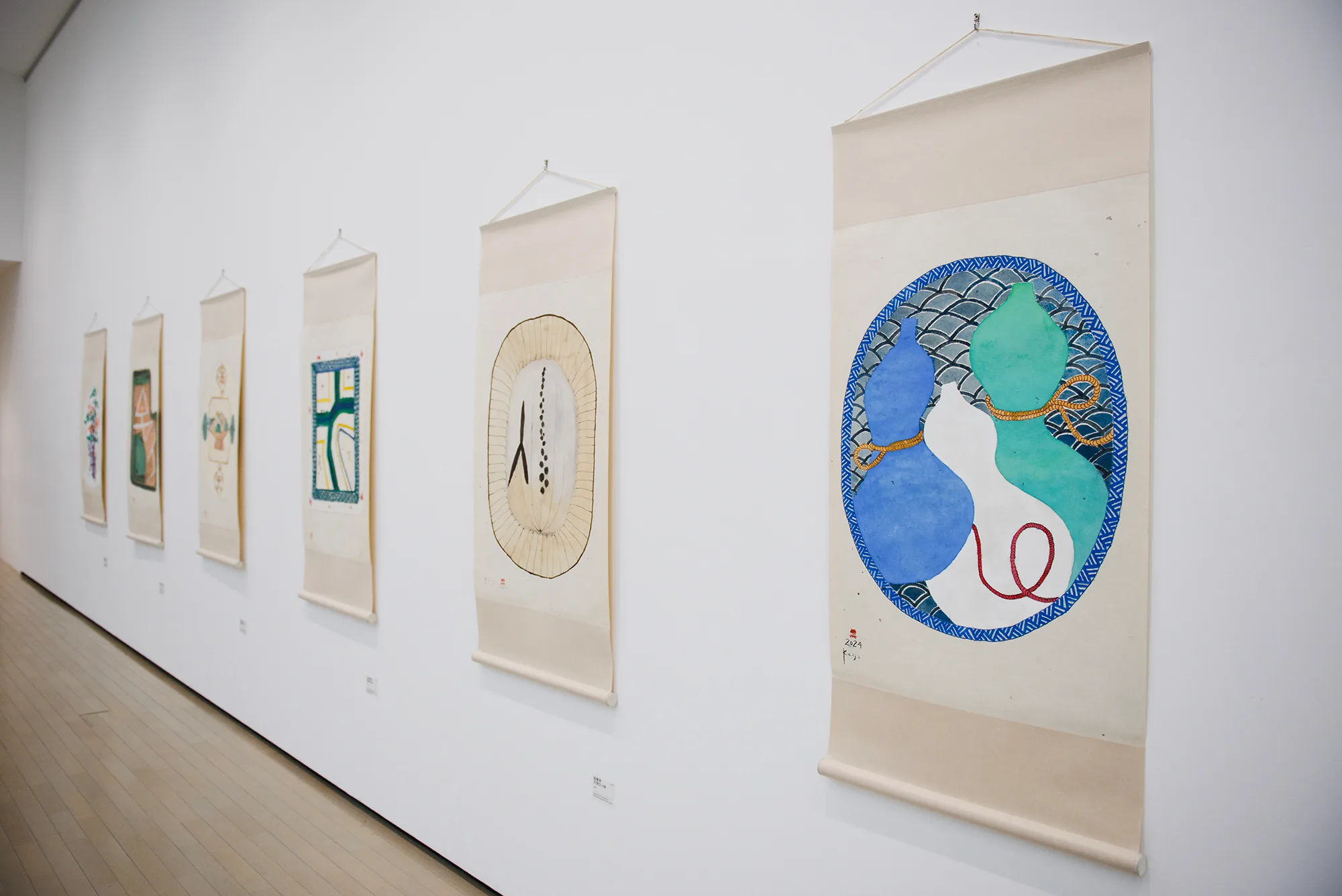 保坂 こちらでギャラリー1の展示が終わり、ギャラリー2へと続きますが、吹き抜けに布を用いた作品などの気持ち良い空間が広がっていて、焼き物を描いた軸装の新しい絵があったり、古道具をあわせて展示していたり、本当に楽しみながら新しい表現に取り組まれていることが伝わってきました。