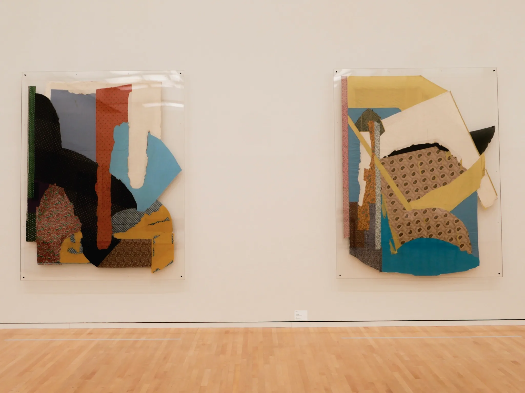 「よせ裂れ」は、手芸のパッチワークのように作られたアッサンブラージュのシリーズ。目を凝らすと、様々な布の寄せ集めが、立体感がある山水画のように見えてくる。従来的な素材や手法のヒエラルキーに頓着しない、自由な造形のあり方も伝わる。
