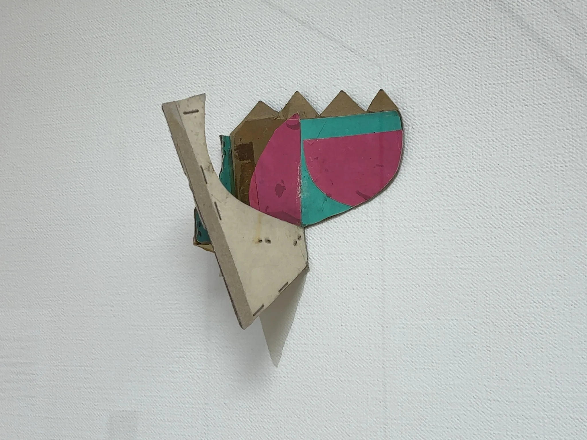 本展の導入部は、初期の代表作「あかさかみつけ」シリーズで始まる。簡便なポリエチレン素材を切り、折り曲げ、着色した一連の小構造体で、「そとかんだ」「かっぱばし」など平仮名のタイトルが付いている。鑑賞者は、歴史的な建造物を想起させる空間を持つ作品と、その造形と一見関わりはないが、実在する地名のタイトルを往還して連想を働かせることになる。