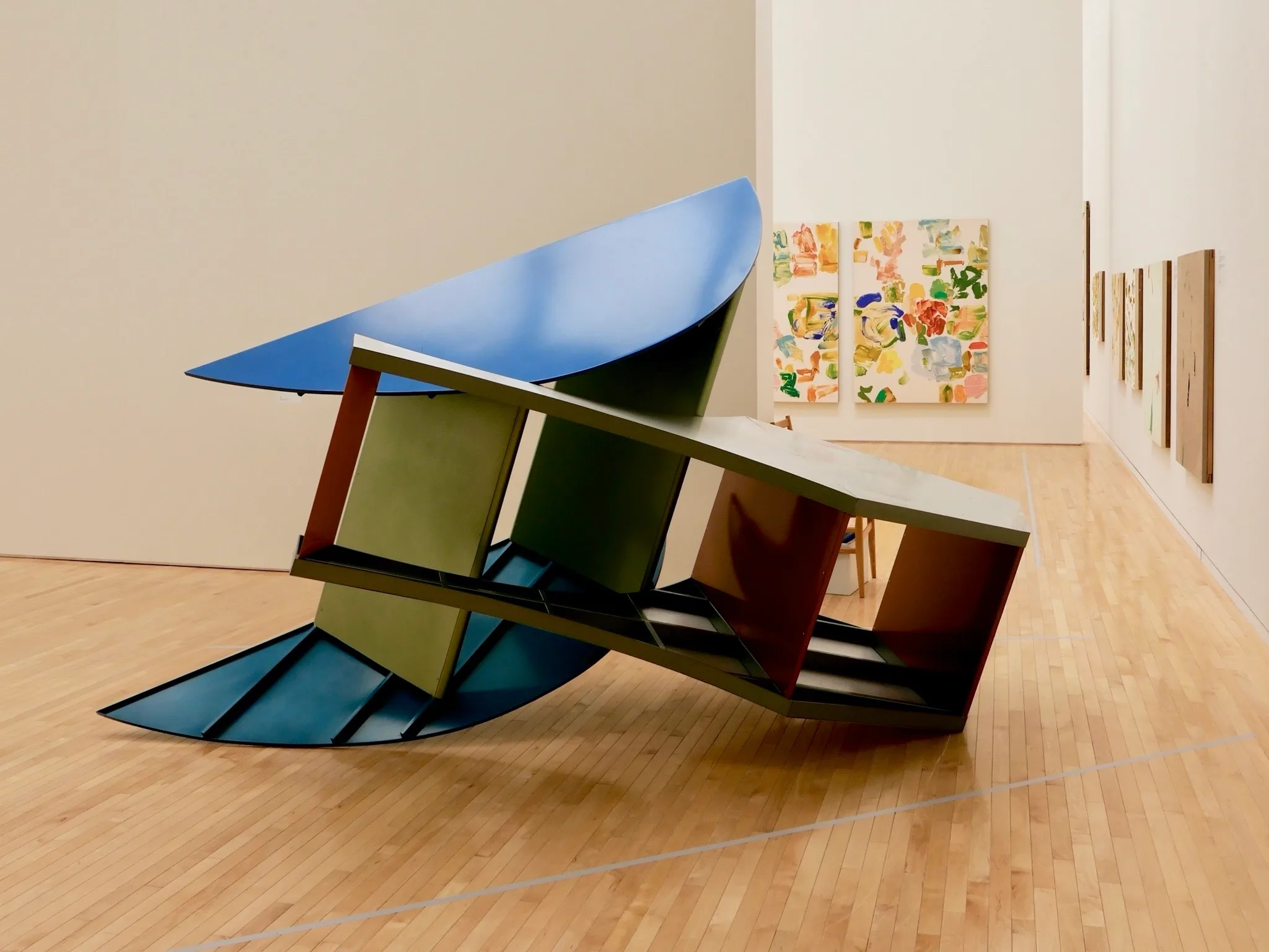 金属製の《Blue Slope》《Yellow Slope》は、1989年の「ユーロパリア’89現代日本美術展」(ベルギー)に出品した立体作品。両作とも「あかさかみつけ」から抽出した断片で構成されているが、格段に大きく、素材も異なるので受ける印象はかなり異なる。大きさと質感の概念や、それを人間が認知する仕組みを問う作品と言えるだろう。
