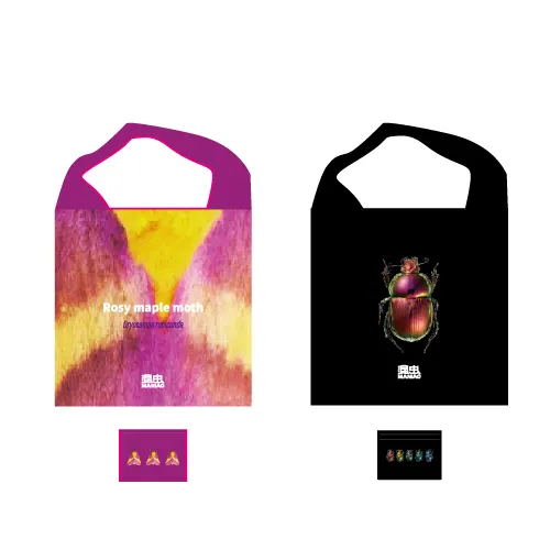 ロージーメープルモスやオオセンチコガネのエコバッグ、タランチュラの2WAYリュック、OUTDOORとのコラボアイテムとしてアルミボトルも販売される。