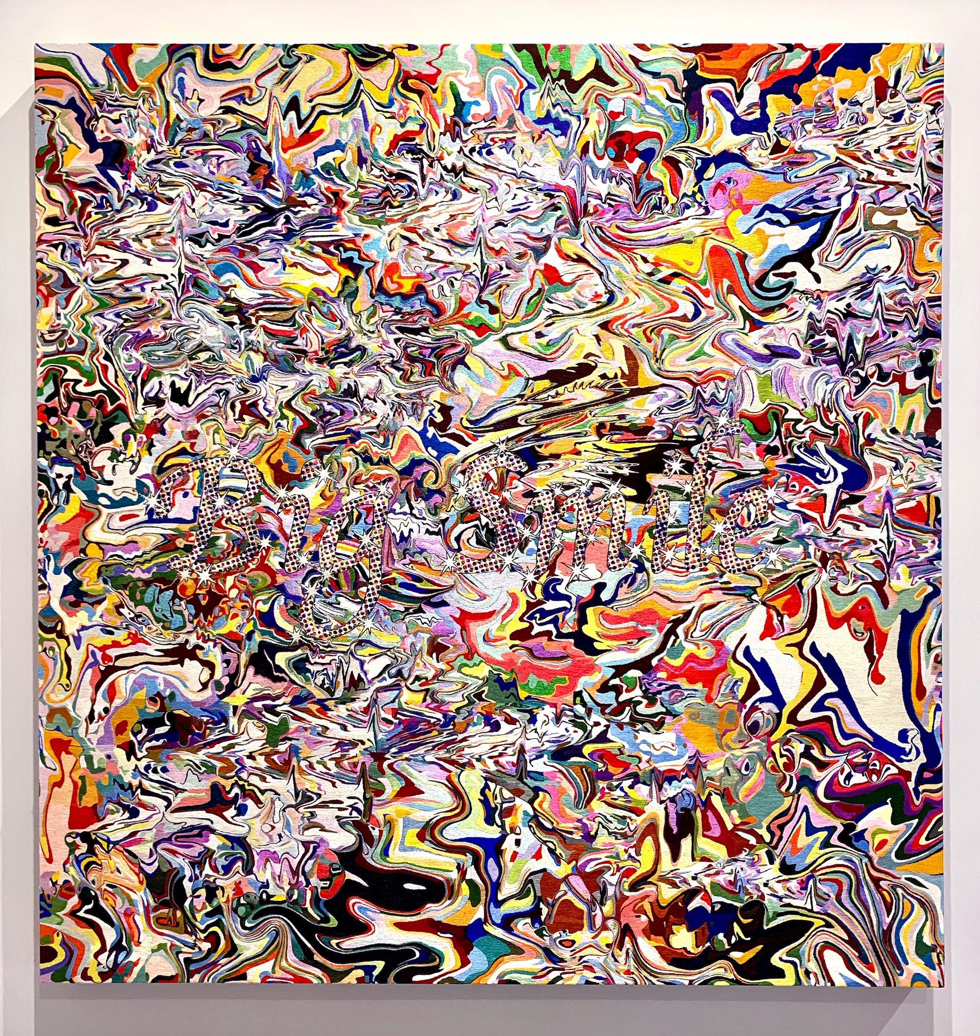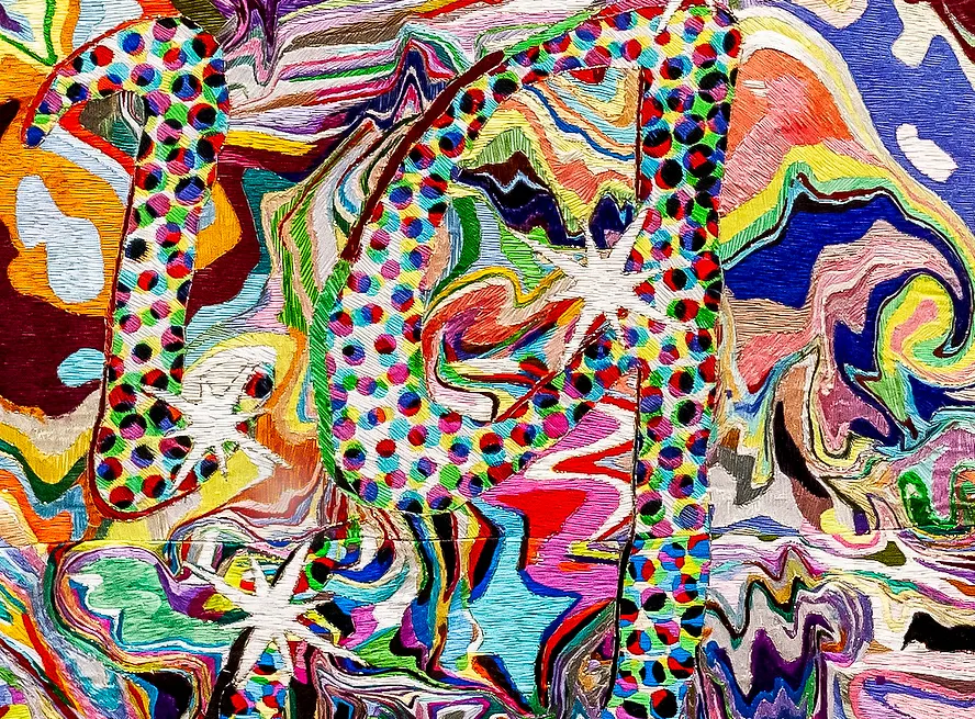 今年6月にスイスで開催されたアートバーゼルのブースで、一際目を惹くある作品があった。正方形のキャンバスを埋め尽くす刺繍はまさに超絶技巧といった細かさで、ひと目見ただけでこの作品が生み出されるまでに費やされた時間が想像できる。
