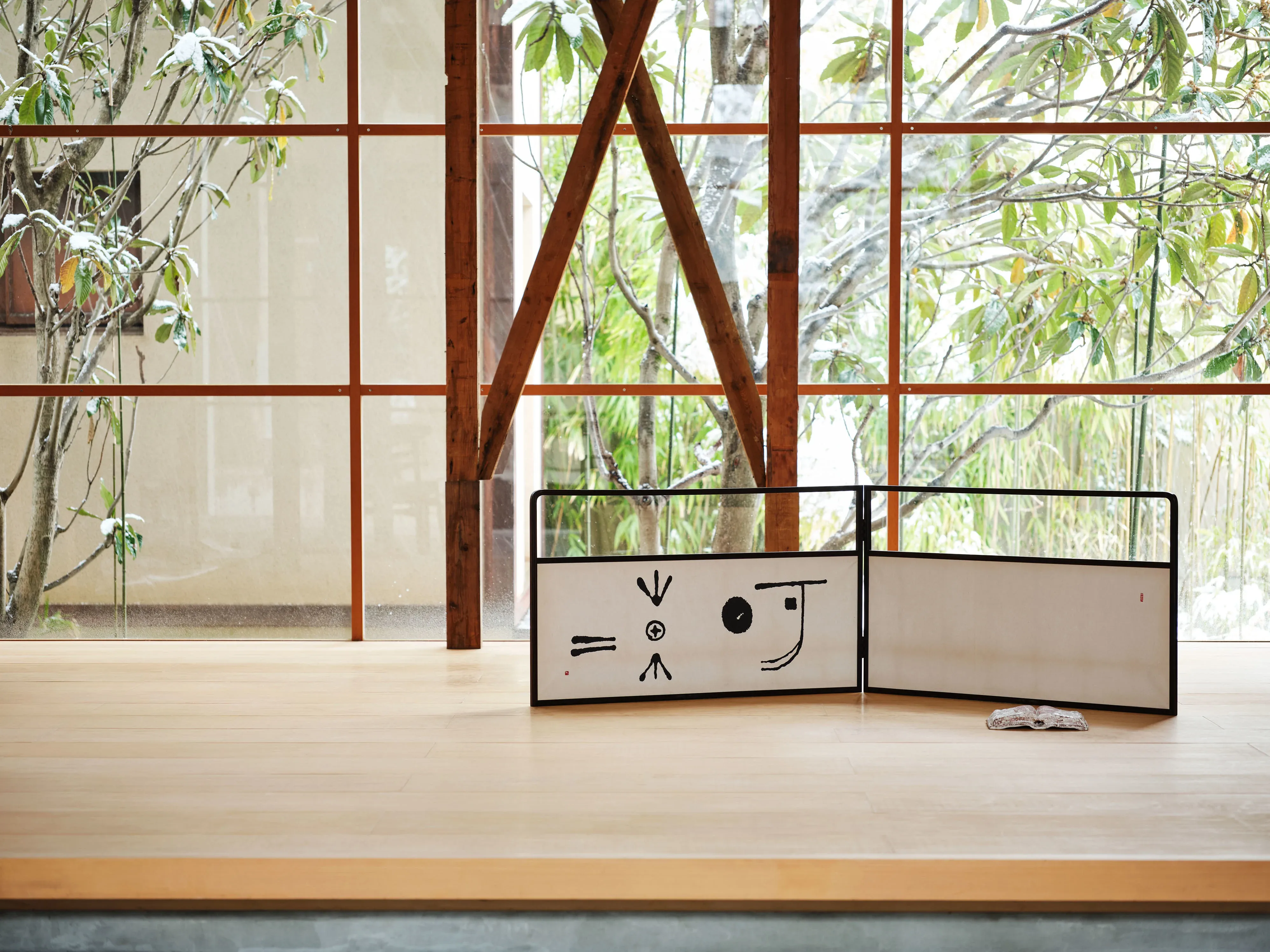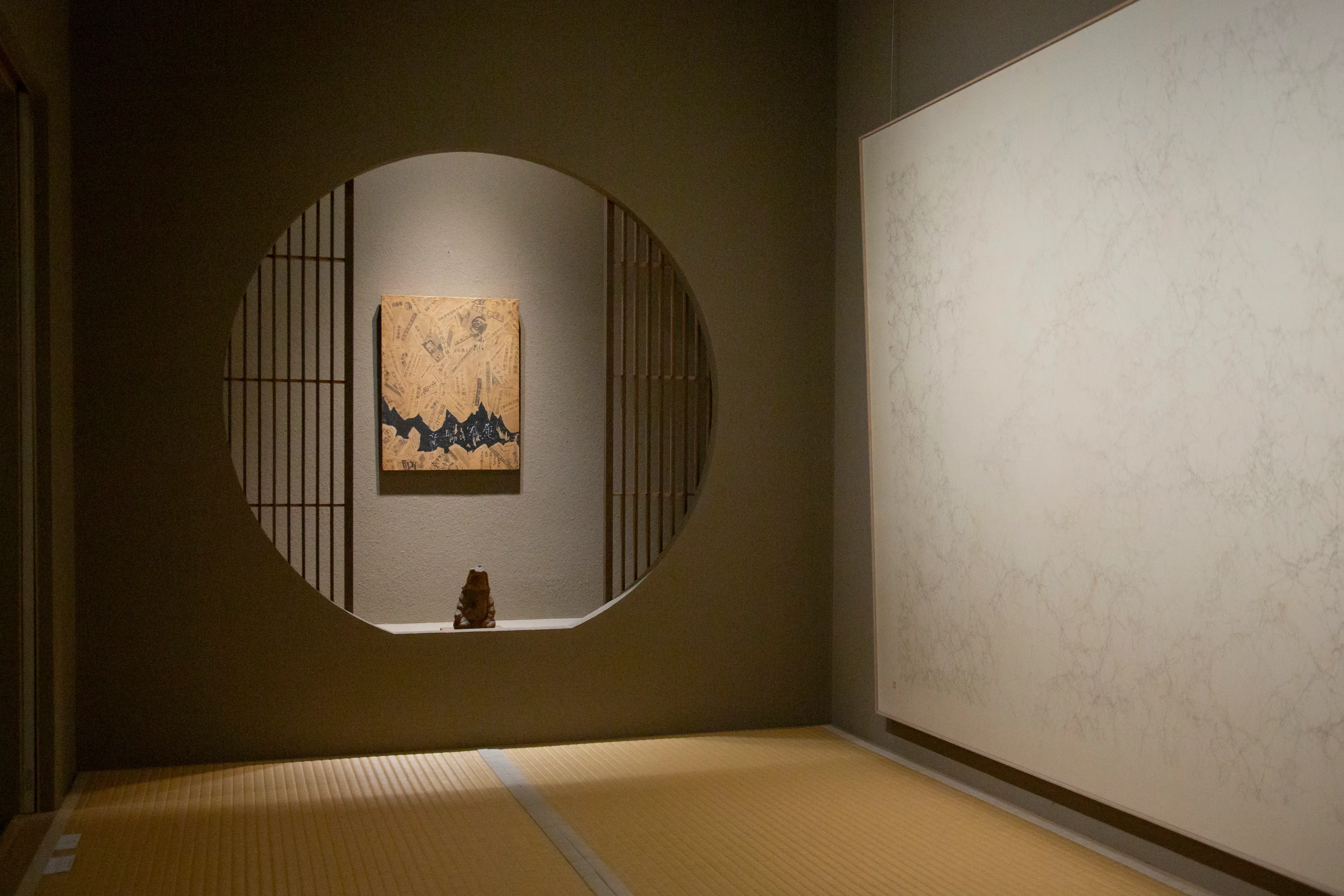 もしこの作品を茶会で使ってみたら? 「風炉先屏風は語ることの少ない道具なので、これほどの表現的な強さを持った作品と調和する道具組みは、ちょっと悩みますね(笑)」。