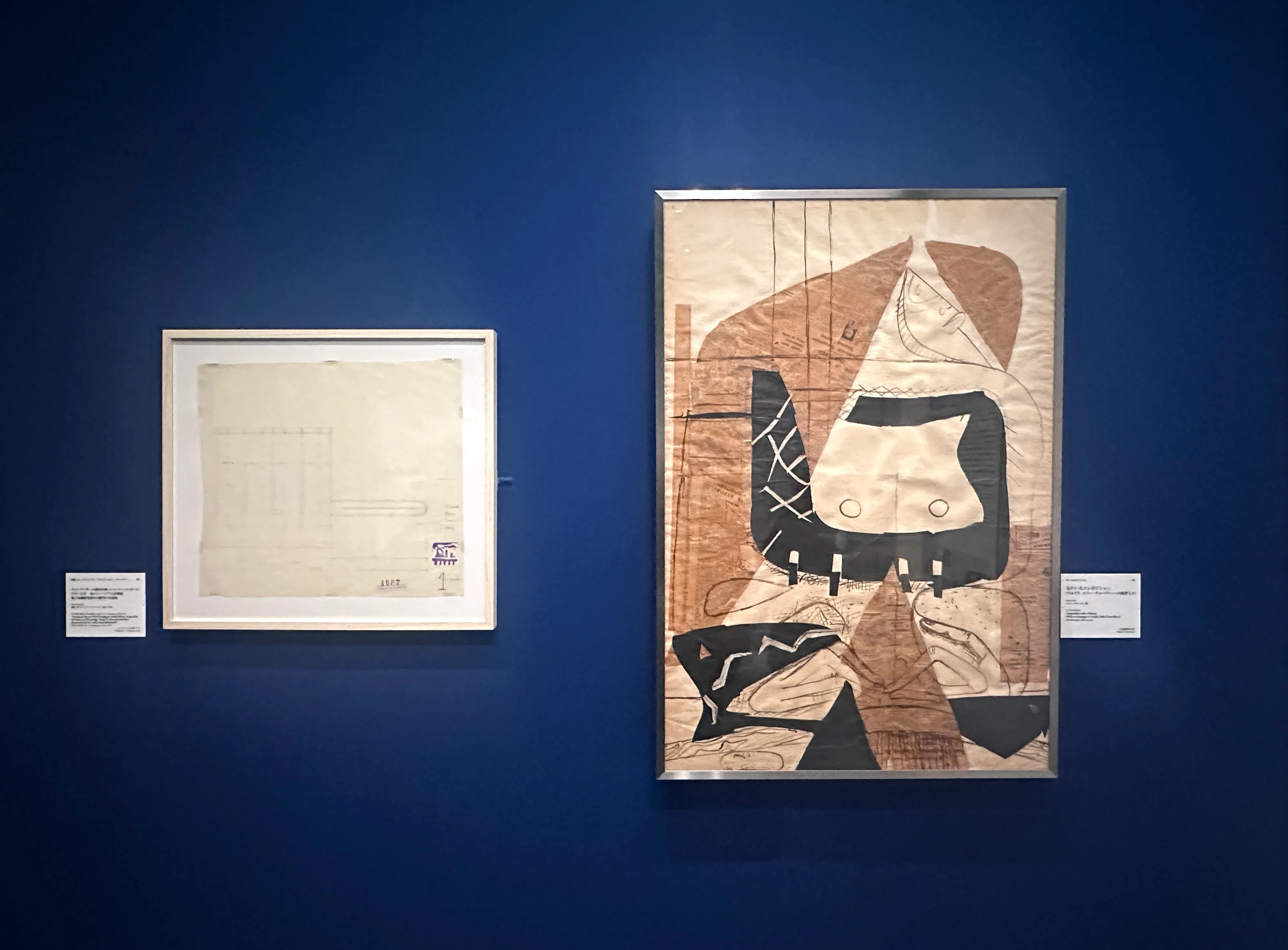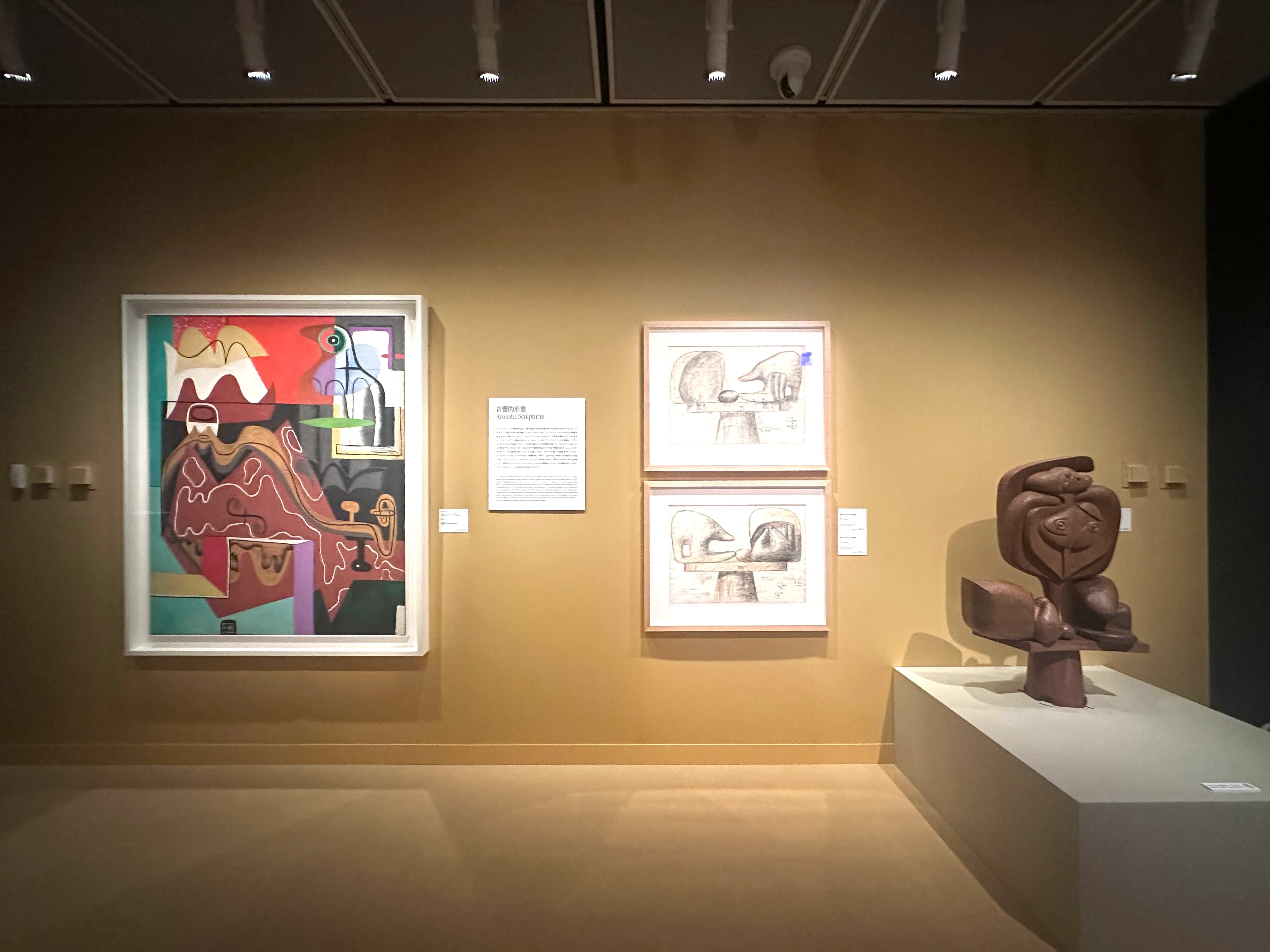 2章「諸芸術の綜合」では、本展タイトルでありコルビュジエの円熟期の創作活動を理解するキーワードである「諸芸術の綜合」の概念を読み解く。絵画、素描、彫刻、タペストリー、建築、都市計画はすべて、彼にとって「ひとつの同じ事柄をさまざまな形で創造的に表現したもの」であり、人の全感覚を満たす詩的環境を創出するため、互いに関わりながら集結するものととらえていたという。コルビュジエが構想した「音響的建築」の実現のためのアイデアスケッチとなるような絵画もここでは見ることができる。