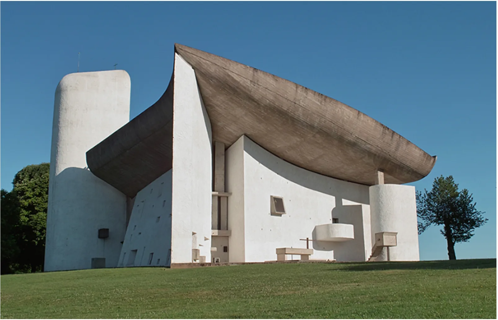 ル・コルビュジエ ロンシャンの礼拝堂(フランス、ロンシャン) 1950-55 南西からの眺め 建築:ル・コルビュジエ、撮影:下田泰也(2016)