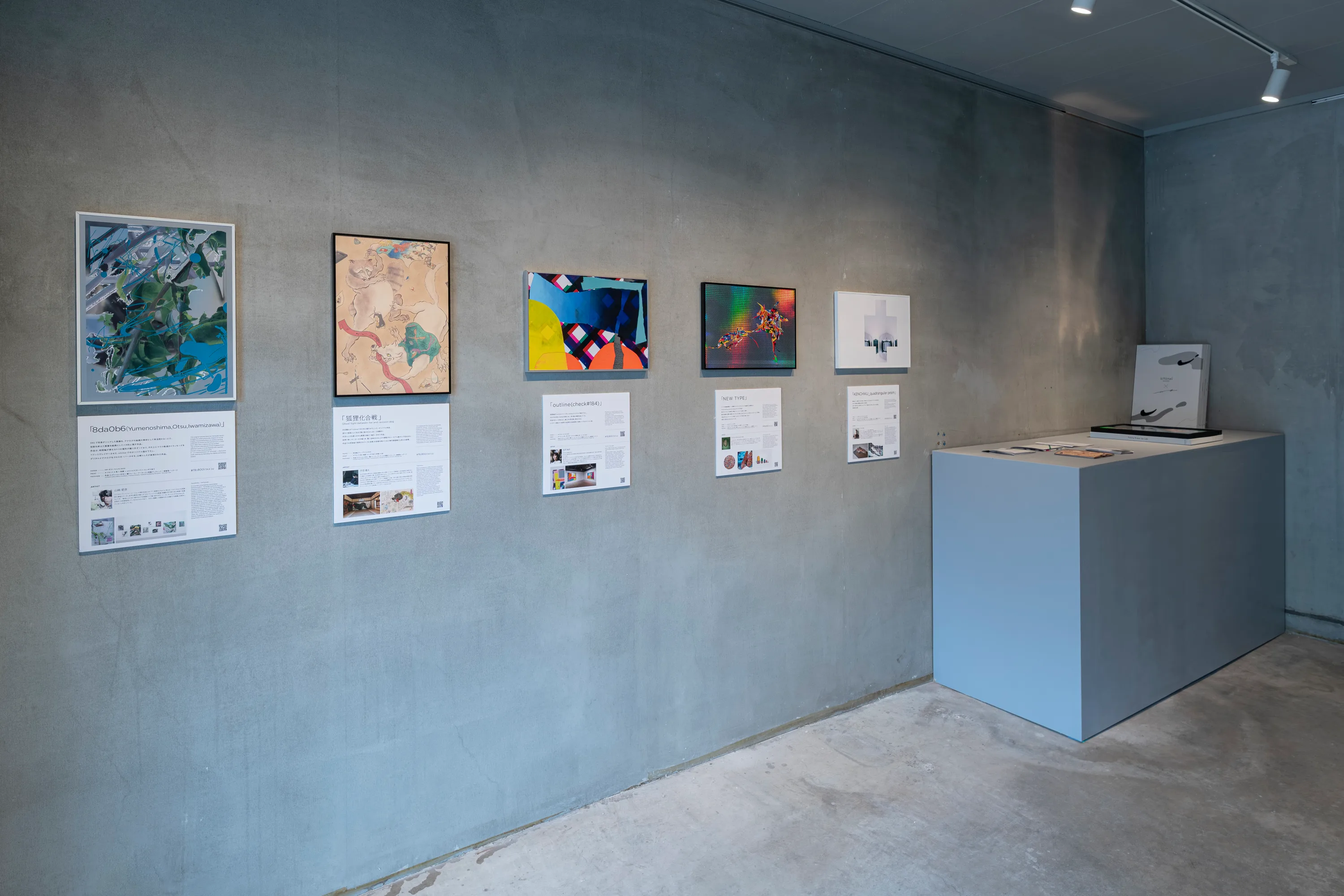 中村夏野、山本真実江、藤野裕美子は、ホテルを会場に展示する。枯山水の坪庭に設置された中村夏野の作品は、5mのターポリンプリント。あたかもデジタル空間から侵入してきたエイリアンのような眺めが出現した。藤野裕美子は、日本画の手法を使いながら、空き家などで見つけた生活の痕跡の残るものを描く。コラージュのような描写が変形した画面に切り取られている。山本真実江は、陶の平面にノスタルジーと装飾性を刻む。立体作品には、前衛陶芸のようなフォルムの中に、重層的な意匠が織り込まれている。