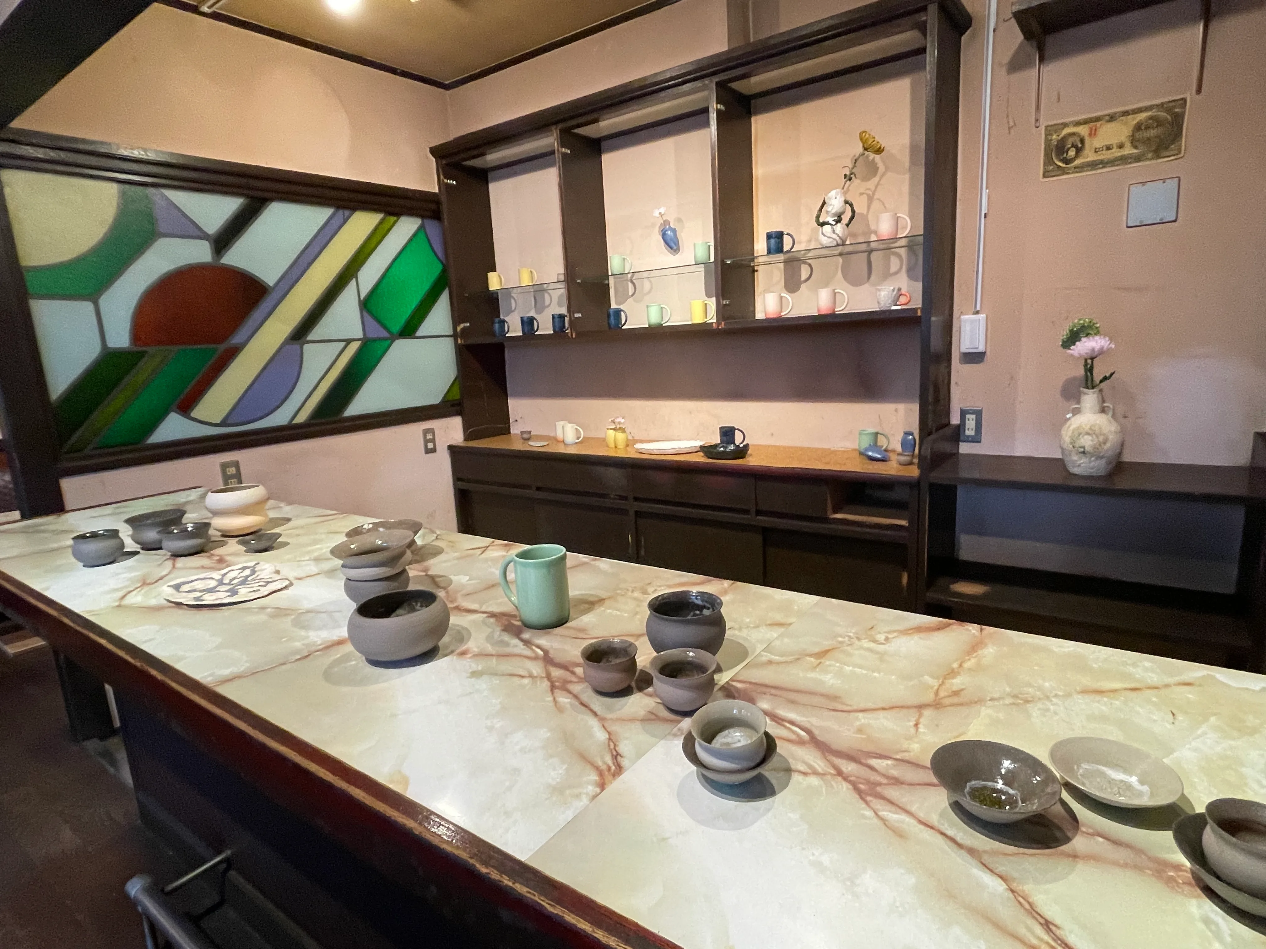 出品者は、京都市内の芸術系大学の卒業生や若手アーティスト。工藤玲は、焚き火のような柔らかな光を放つネオン管を使った作品を展示。元喫茶店のスペースでは、「使うことで、日常を光らせる」をコンセプトに若手陶芸家3人が出品した。